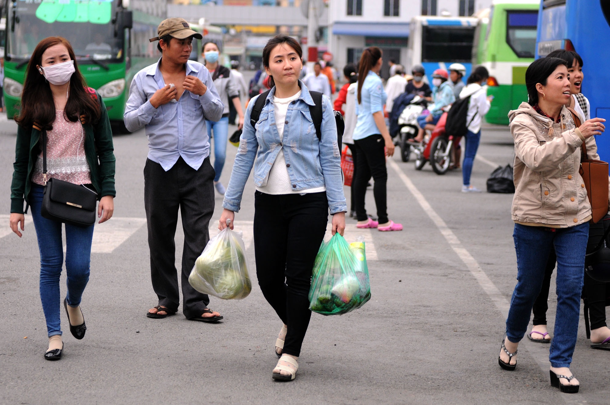 | Nhiều sinh viên các trường đại học ở thành phố cũng đổ về Sài Gòn để đến lớp vào ngày mai. Cô gái Hoàng Oanh (quê Bạc Liêu) đang tìm xe buýt để về nhà trọ tại quận 10. |