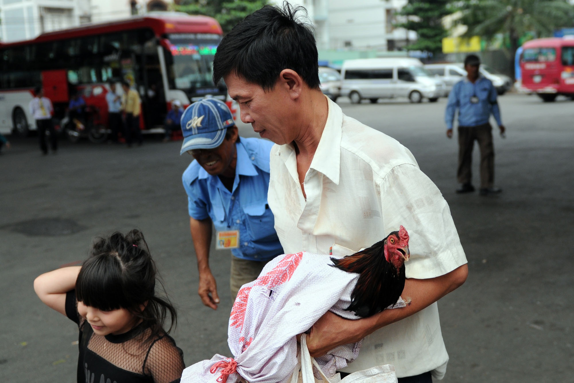 | Anh Thọ (quê Bình Thuận) cùng con gái trở lại TP HCM chiều 3/1. Anh chia sẻ: "Đi xe cộ vào mấy dịp này hơi vất vả, nhưng lâu lâu mới có dịp cho con gái về thăm ông bà nội nên phải chịu". |
