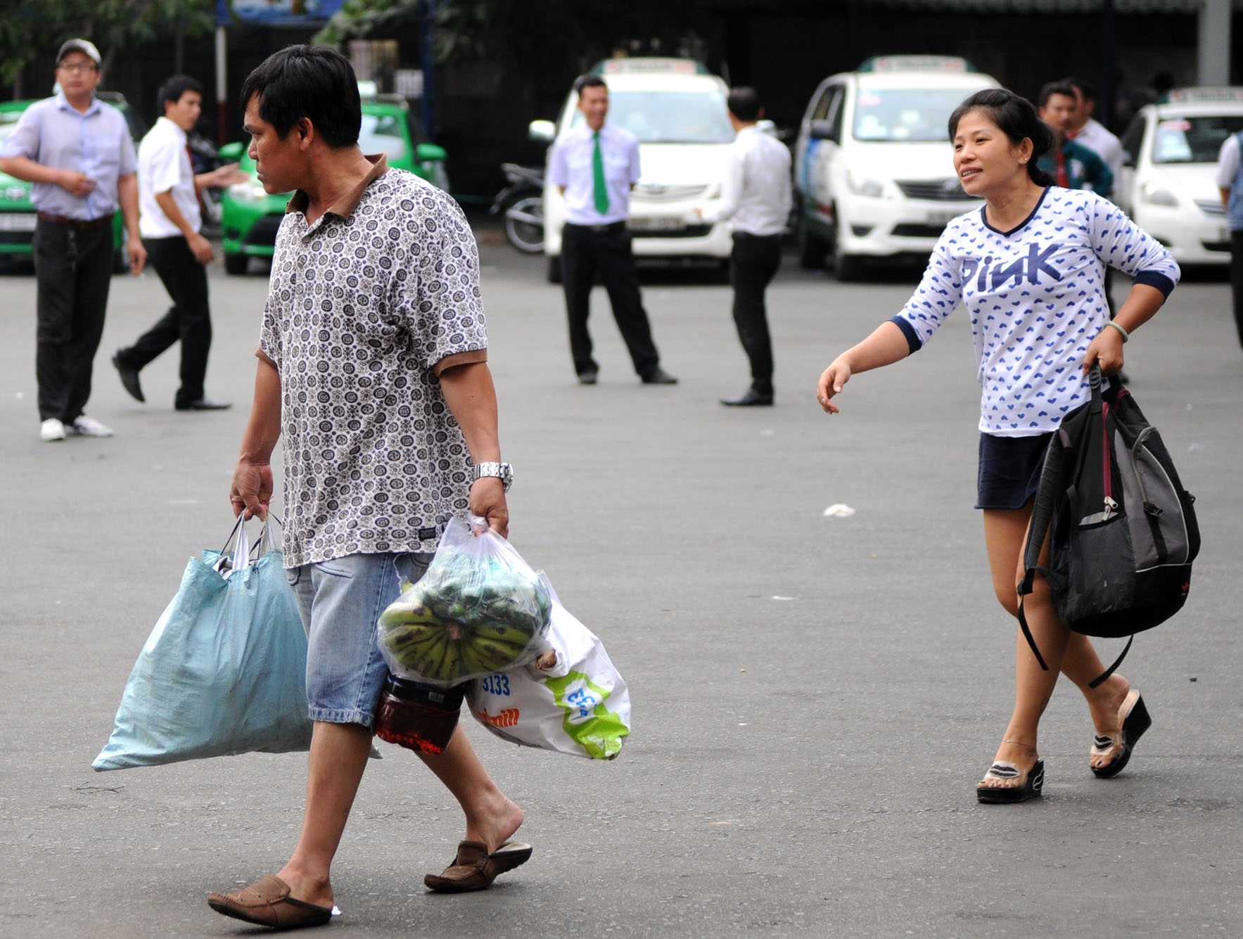 | Tại bến xe miền Đông, miền Tây chiều 3/1, rất đông hành khách tay xách nách mang sản vật, quà cáp trở lại thành phố sau dịp về quê chơi. |
