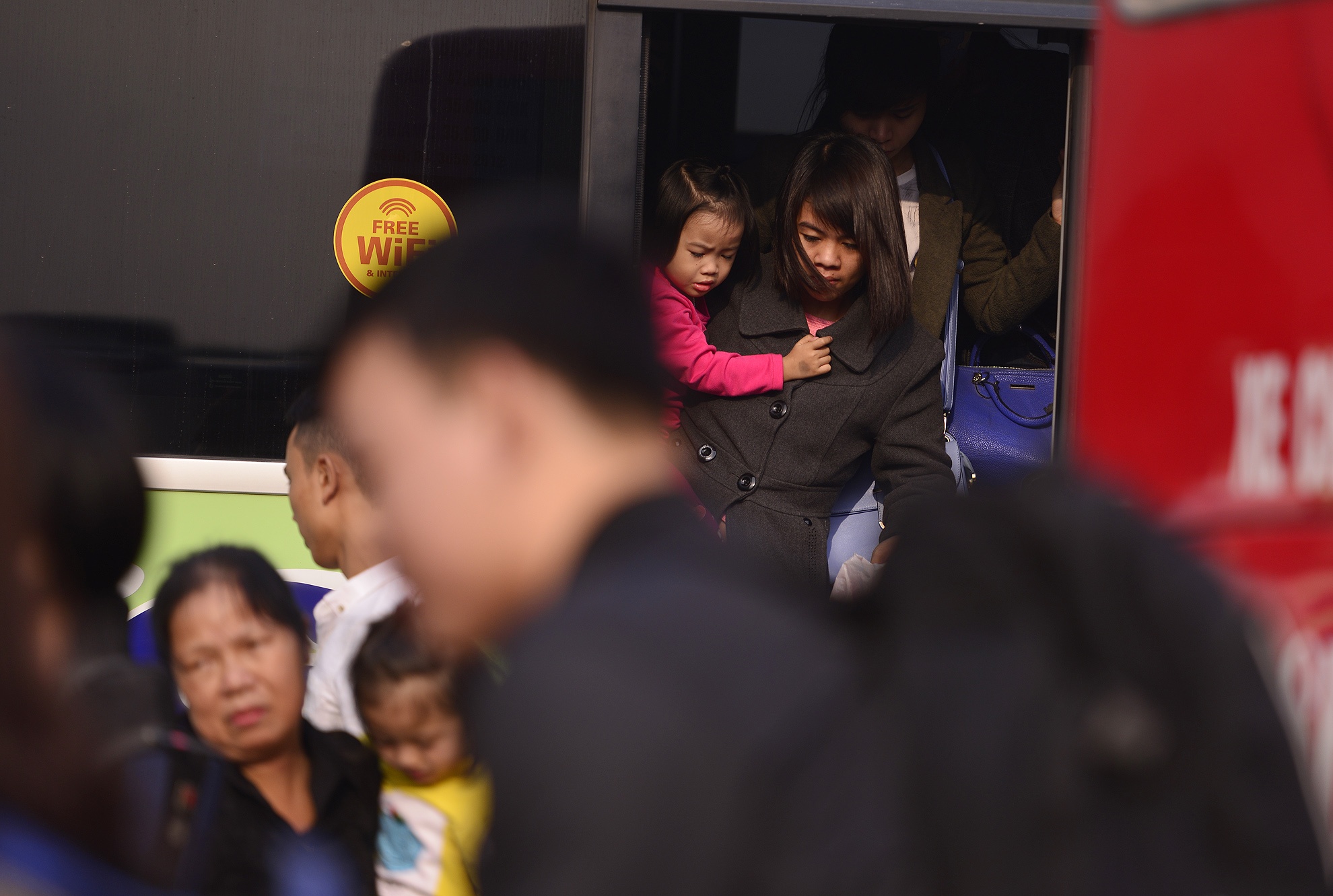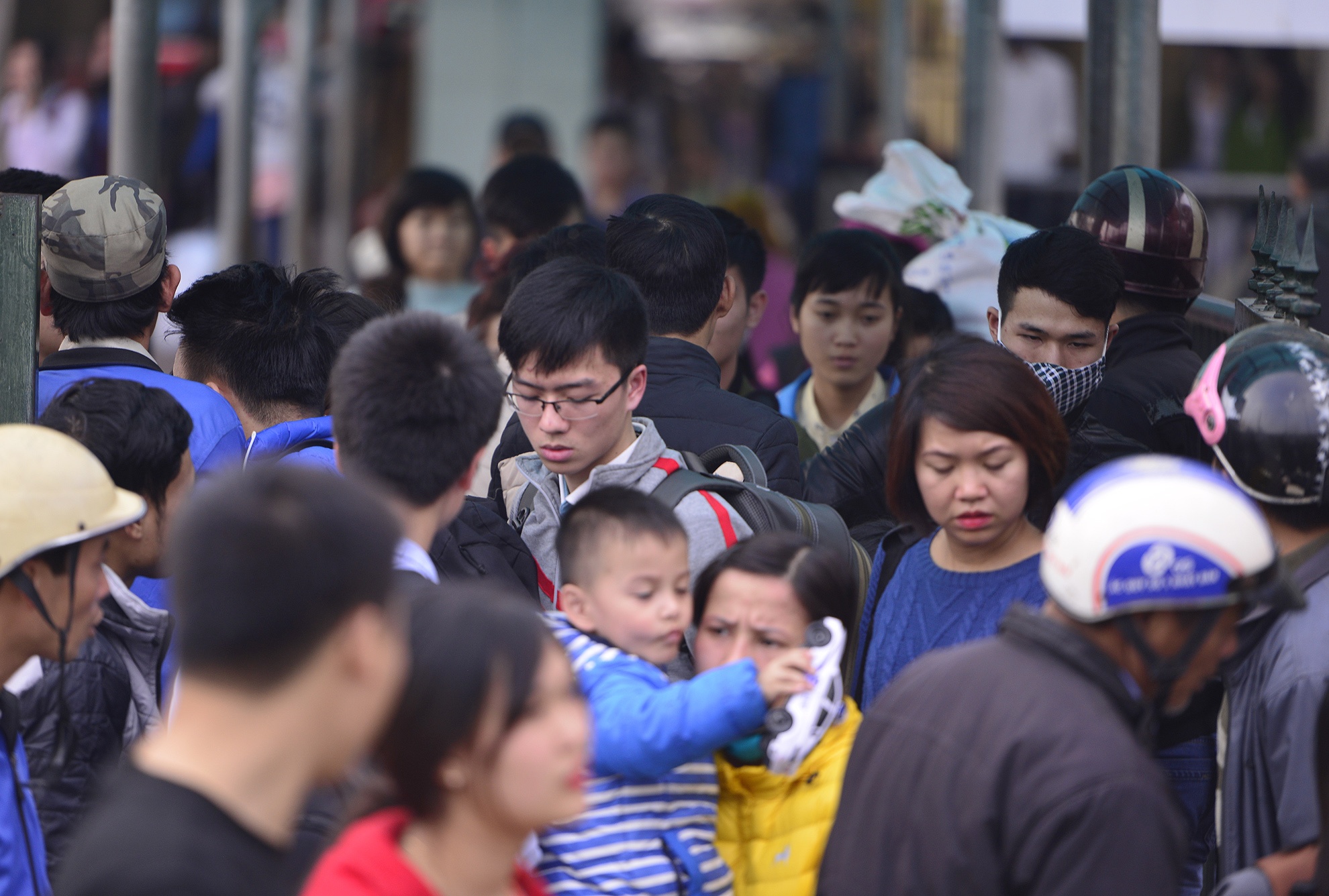 | Đến 18h chiều 3/1, dòng người tiếp tục đổ về thành phố khiến các bến xe chật ních người. |