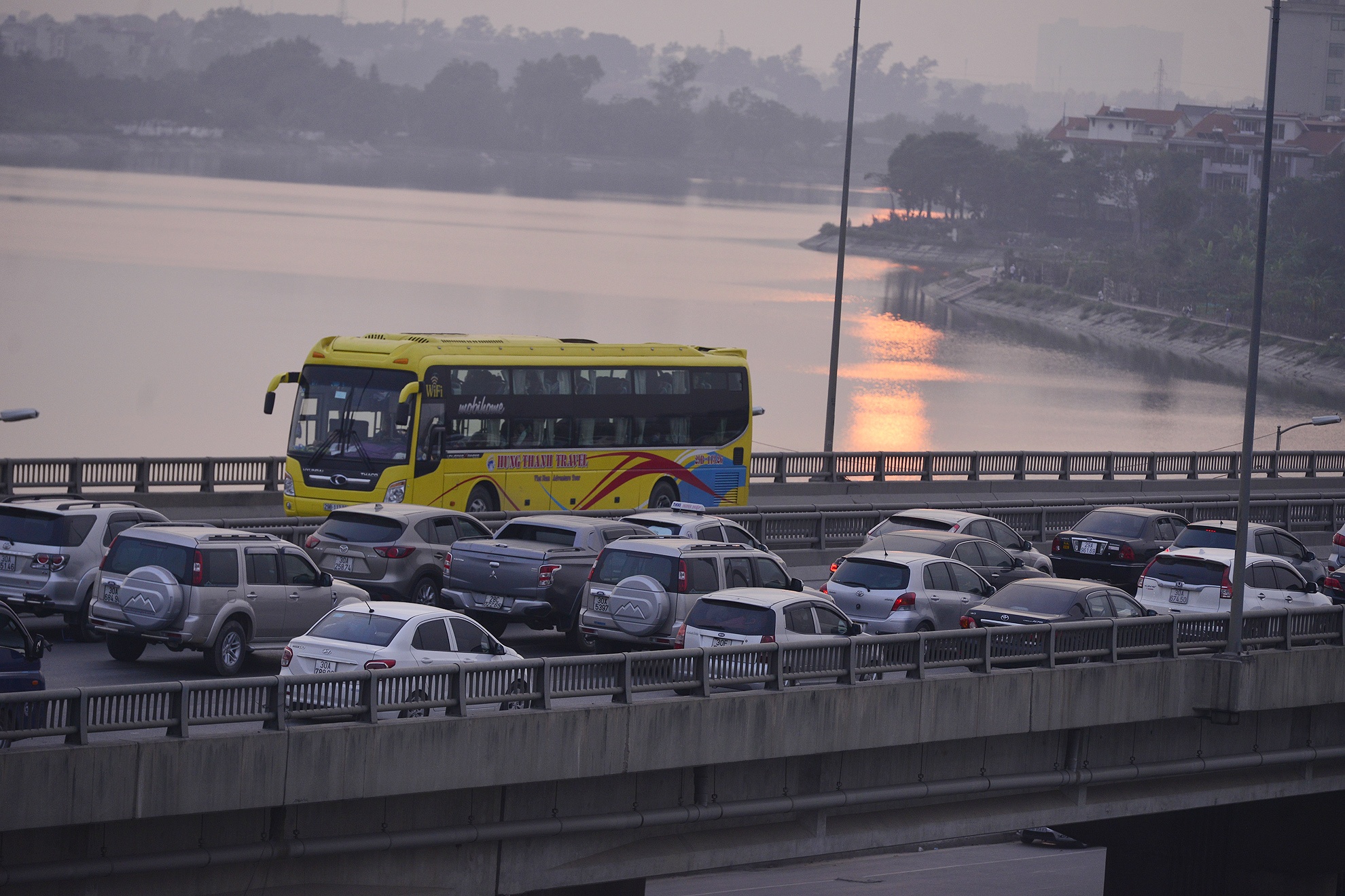 | Đường trên cao hướng vào nội đô lúc 18h, ôtô chỉ có thể di chuyển chậm. |