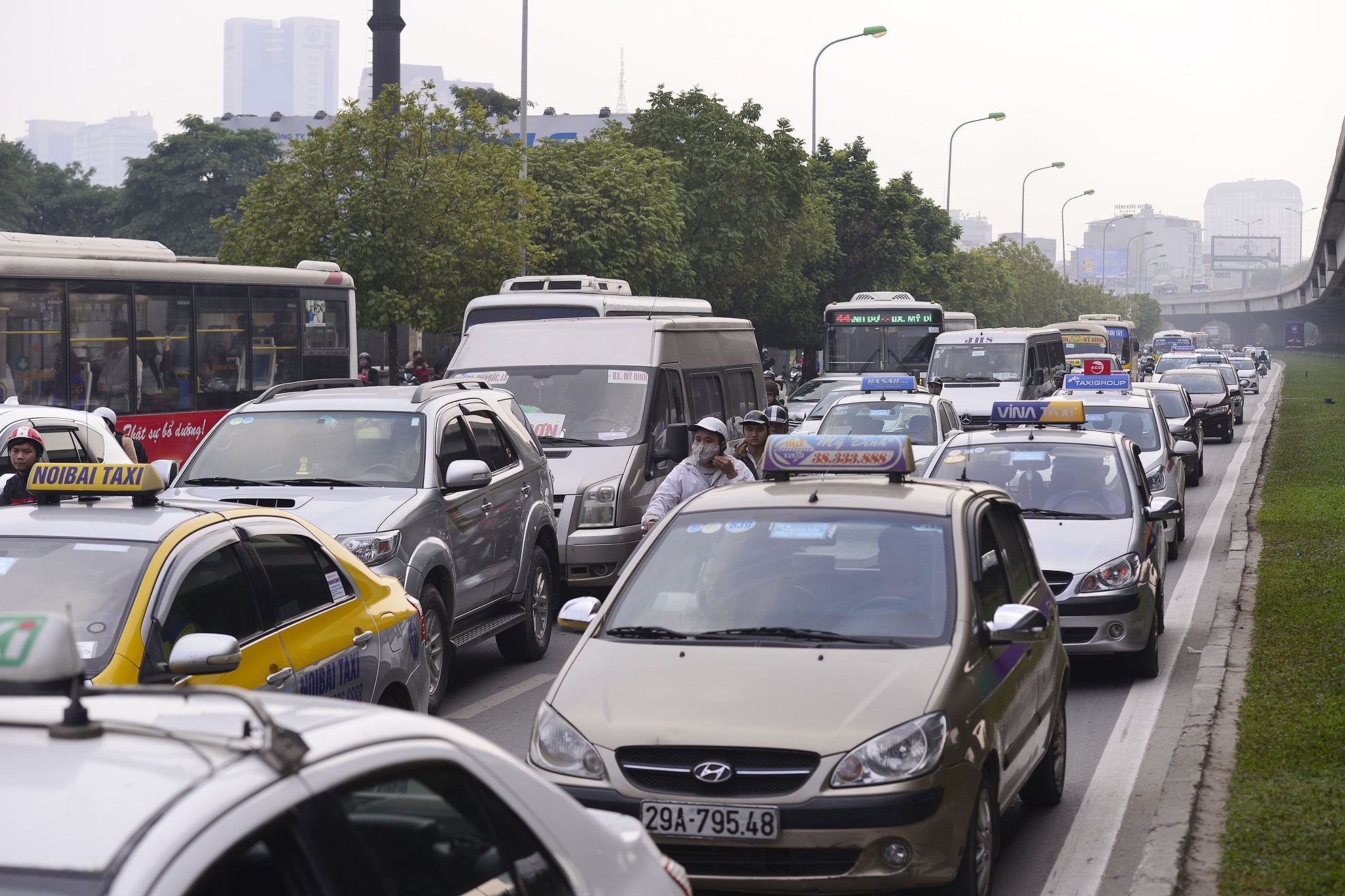 | Đường Phạm Hùng, Phạm Văn Đồng, xe chỉ có thể nhích từng vài chục cm. |