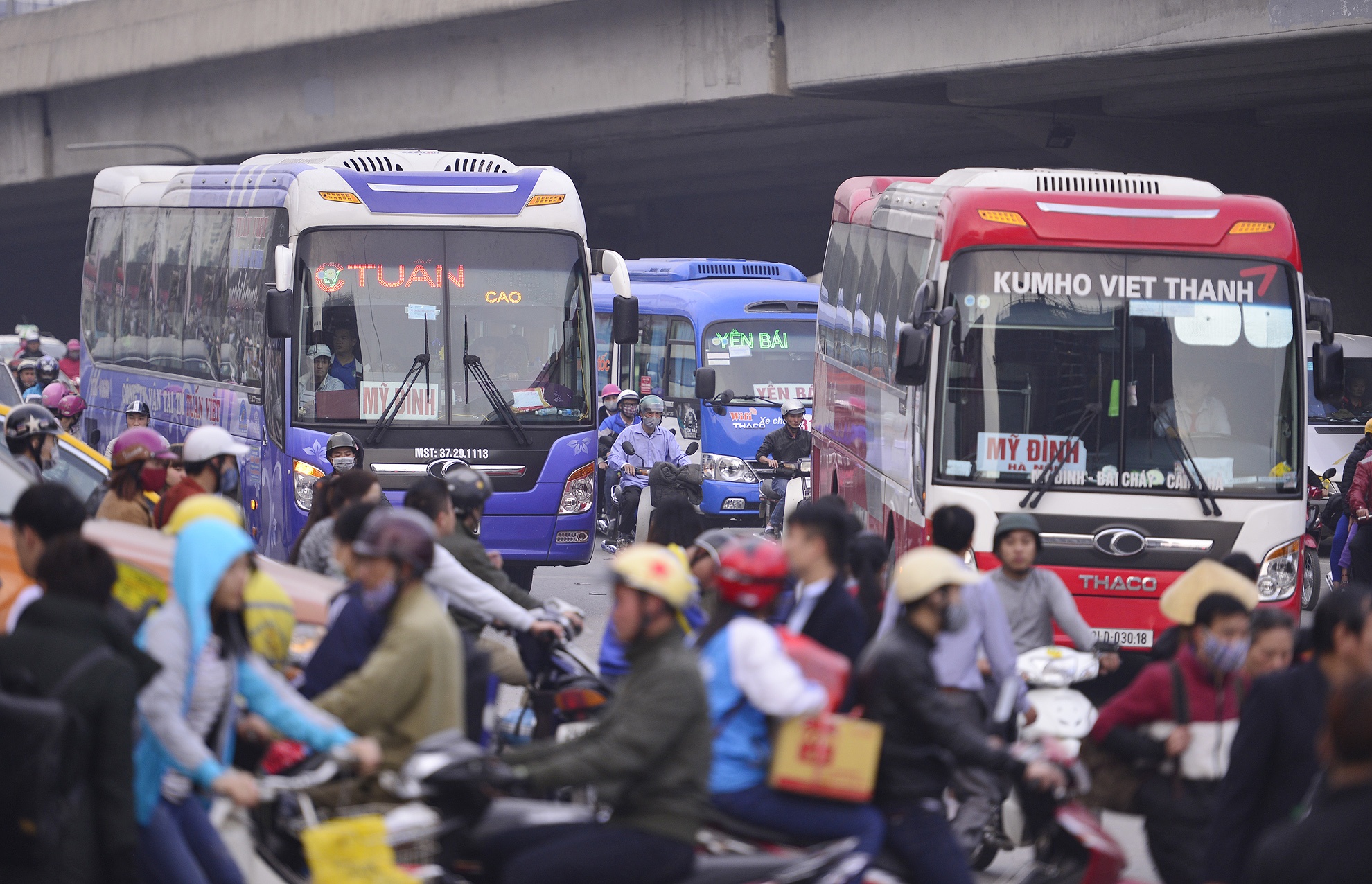 | Các tuyến xe buýt từ bến Giáp Bát, Mỹ Đình đi các ngả chiều nay rất đông khách. |