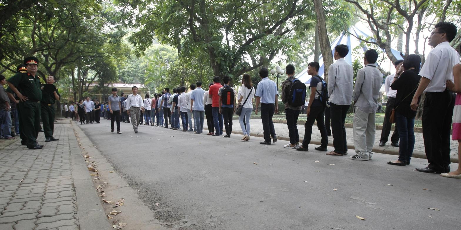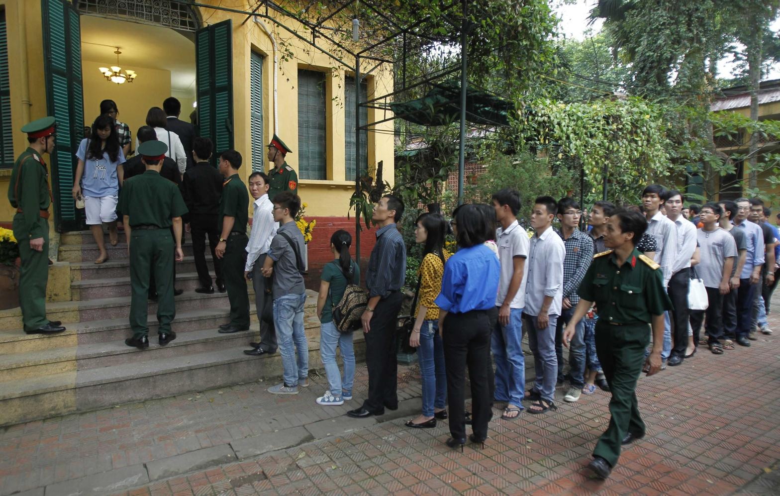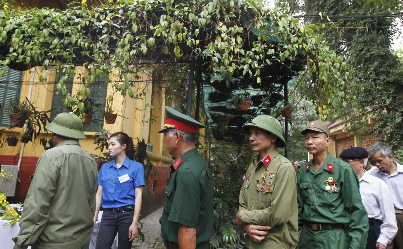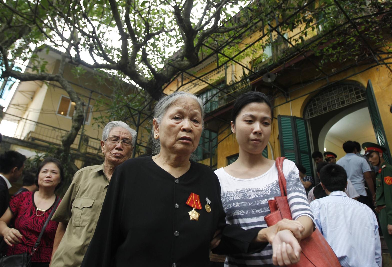 | Các cựu chiến binh xếp hàng viếng Đại tướng Võ Nguyên Giáp tại nhà riêng tại số 30 Hoàng Diệu, Hà Nội hôm 6/10. Ảnh: Reuters. |