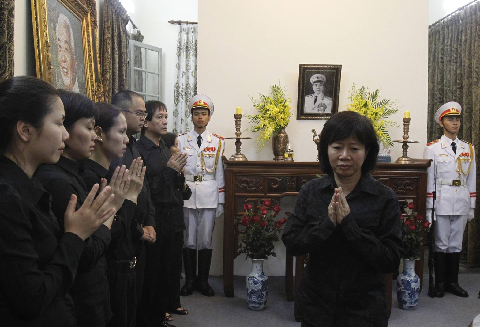 | Con cháu Đại tướng thể hiện lòng thành kính đối với người cha, người ông của họ. Ảnh: Reuters/Kham. |