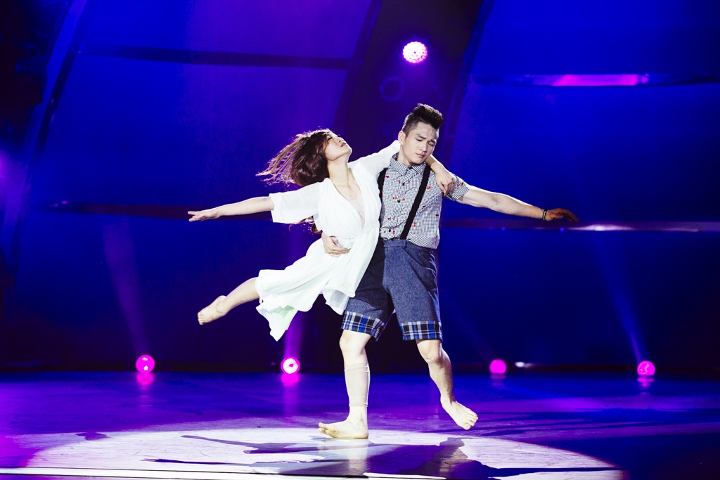 Trong tiết mục đương đại do quán quân Mỹ Chehon biên đạo trên nền ca khúc I Won’t Give Up, Gia Bảo – Hải Anh mang đến tiết mục dạt dào cảm xúc. Tinh thần lãng mạn được cặp đôi khai thác triệt để. |
