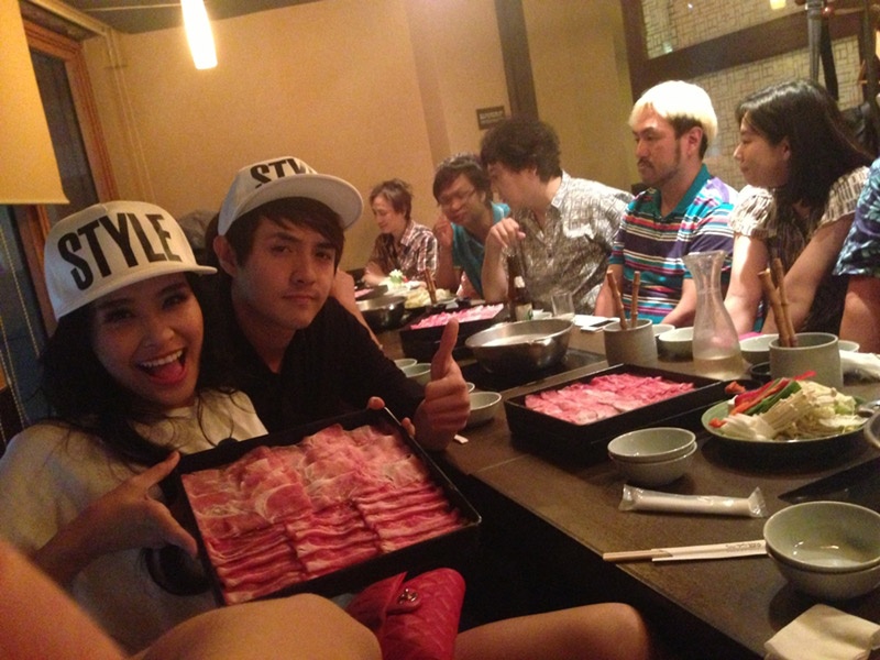 | Cả hai thích thú khi thưởng thức những món ăn nổi tiếng tại Nhật. Họ không quên ghi lại khoảnh khắc vui vẻ này. |