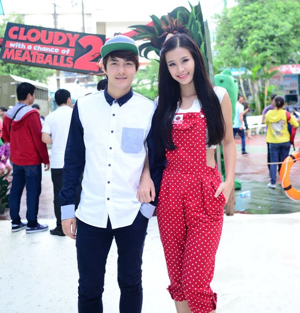 | Ông Cao Thắng quấn quýt không rời bên bạn gái. Bộ phim hoạt hình này là dự án lồng tiếng mới nhất của Đông Nhi. Nhân vật nữ ca sĩ đảm nhận có tên là Sam và là bạn gái của nhà khoa học trẻ Flint Lockwood. Đây là nhân vật do MC Nguyên Khang đảm nhận việc lồng tiếng. |