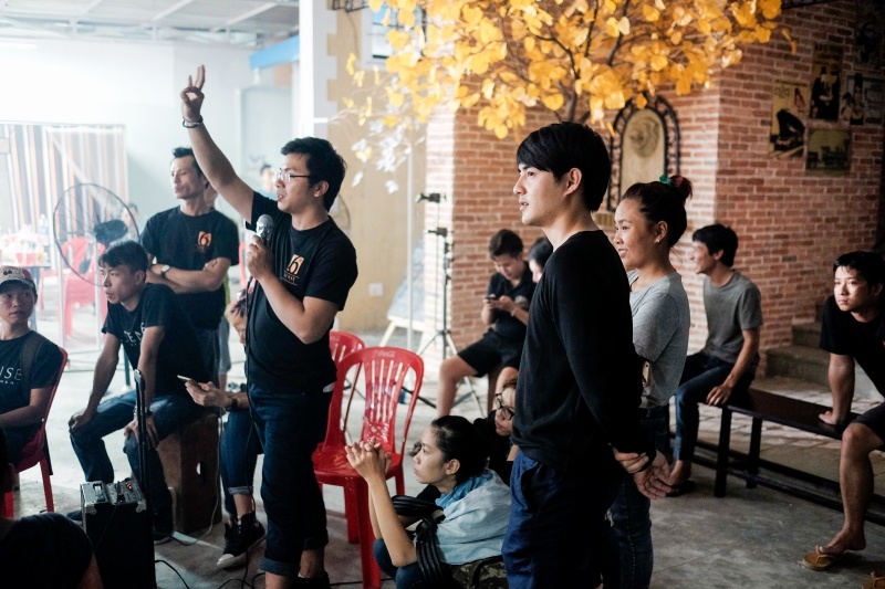 | Trong vai trò nhà sản xuất, Ông Cao Thắng giám sát quá trình thực hiện MV của bạn gái. |