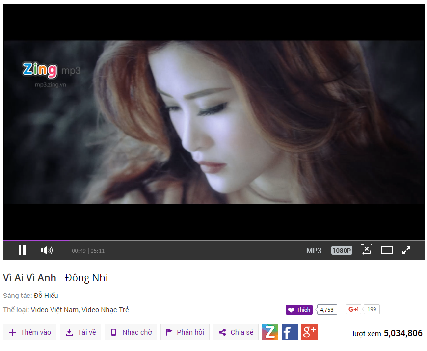 Top 5 hạng mục MV của năm quy tụ những ca sĩ nổi tiếng hiện nay của Vpop. Hồ Ngọc Hà – Noo Phước Thịnh đang giữ nhiều ưu thế với MV Em đi tìm anh chiếm hơn 12 triệu lượt xem. Màn “song kiếm hợp bích” của 2 giọng ca ăn khách tạo hiệu ứng vượt ngoài mong đợi. Đây cũng được xem là sự thức thời của bộ đôi nổi tiếng sau 4 năm kể từ khi kết hợp trong Nỗi nhớ đầy vơi.