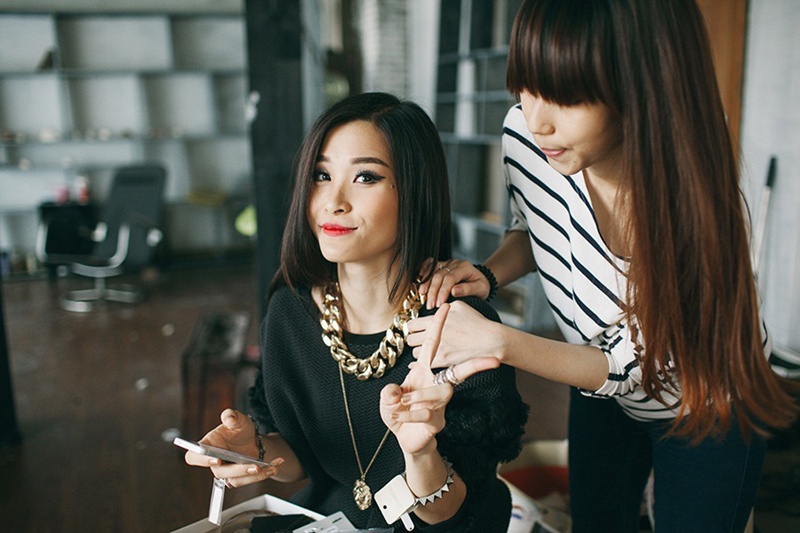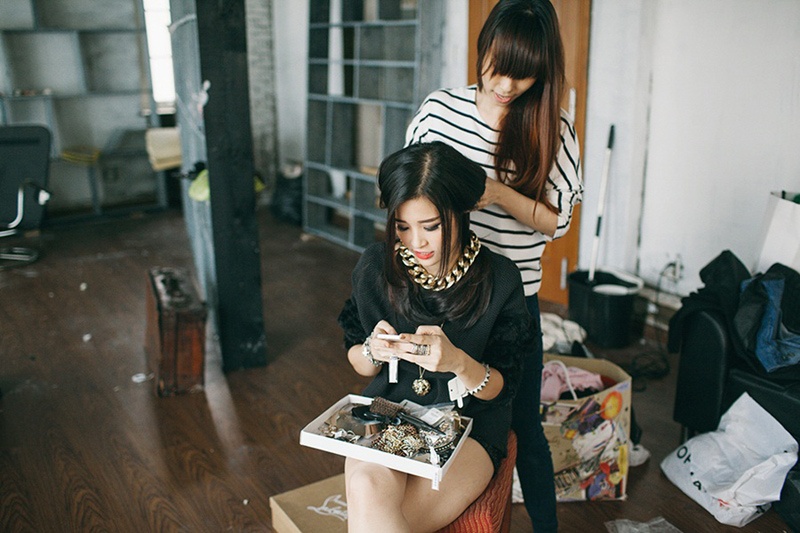 Đông Nhi được chăm sóc tận tình trong hậu trường chụp ảnh