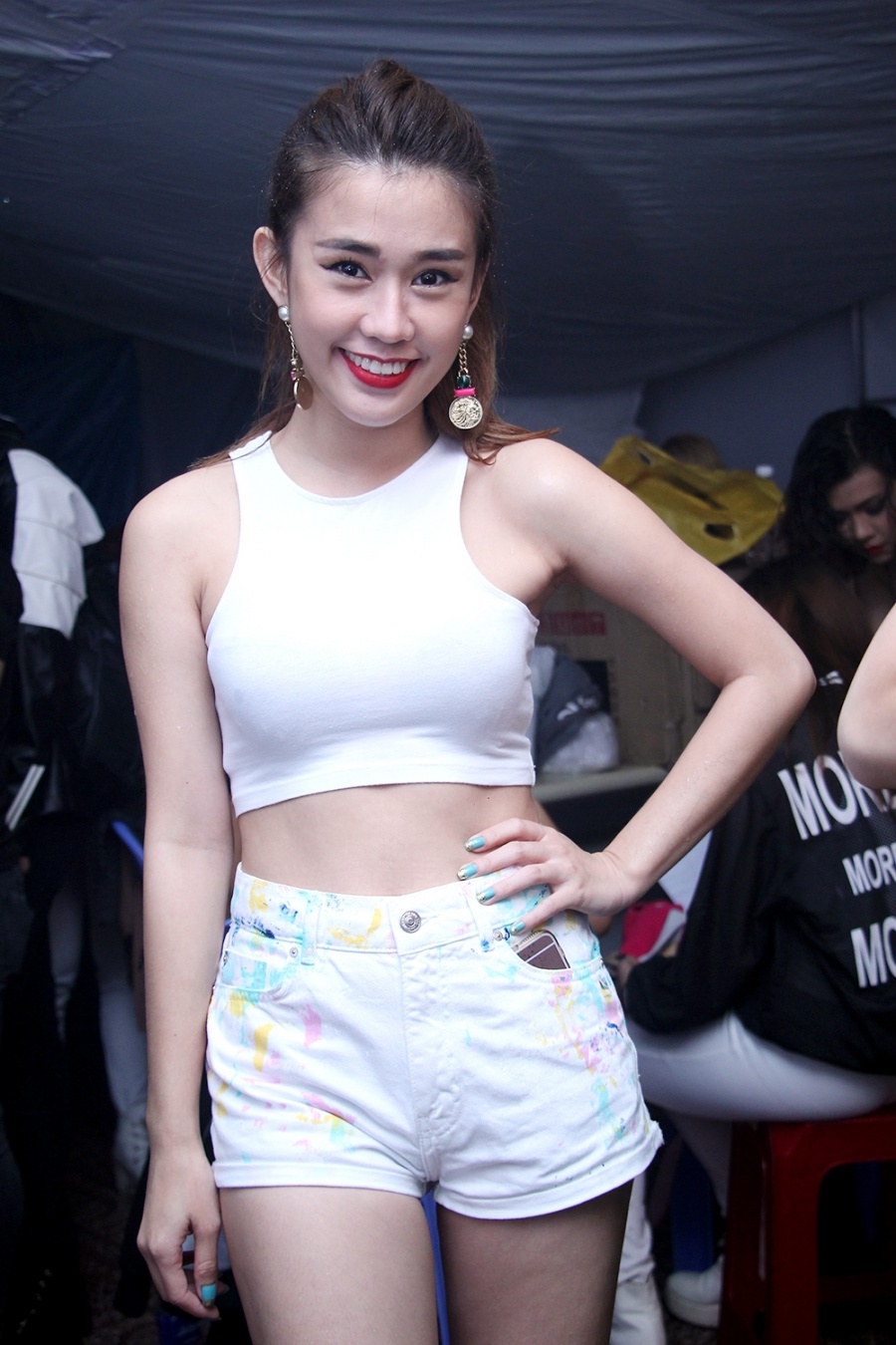 | Hot girl Ngọc Thảo khoe vòng eo con kiến khi diện quần sóc, áo crop top. |
