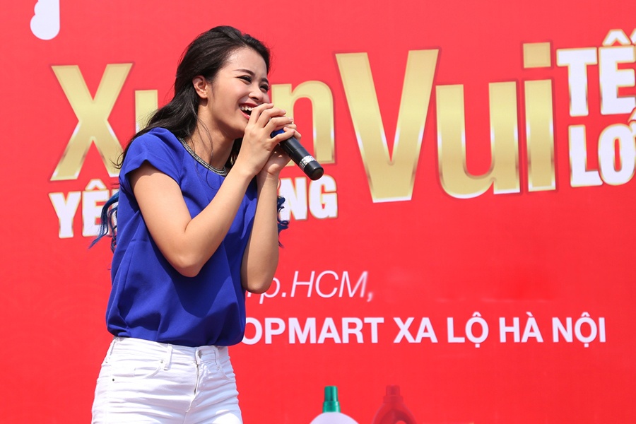 | Sở hữu giọng hát ngọt ngào và phong cách trình diễn cuốn hút, Đông Nhi nhận được nhiều tràng pháo tay khi biểu diễn những bài hát về mùa xuân và tuổi trẻ. |