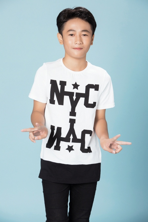 | Cậu nhóc Trần Ngọc Quang với phong cách thời trang khỏe khoắn. Với phần thi Bang Bang trong thử thách đầu tiên, “chiến binh” này khiến cả bốn huấn luyện viên phải rời ghế nóng để lên sân khấu nhún nhảy.