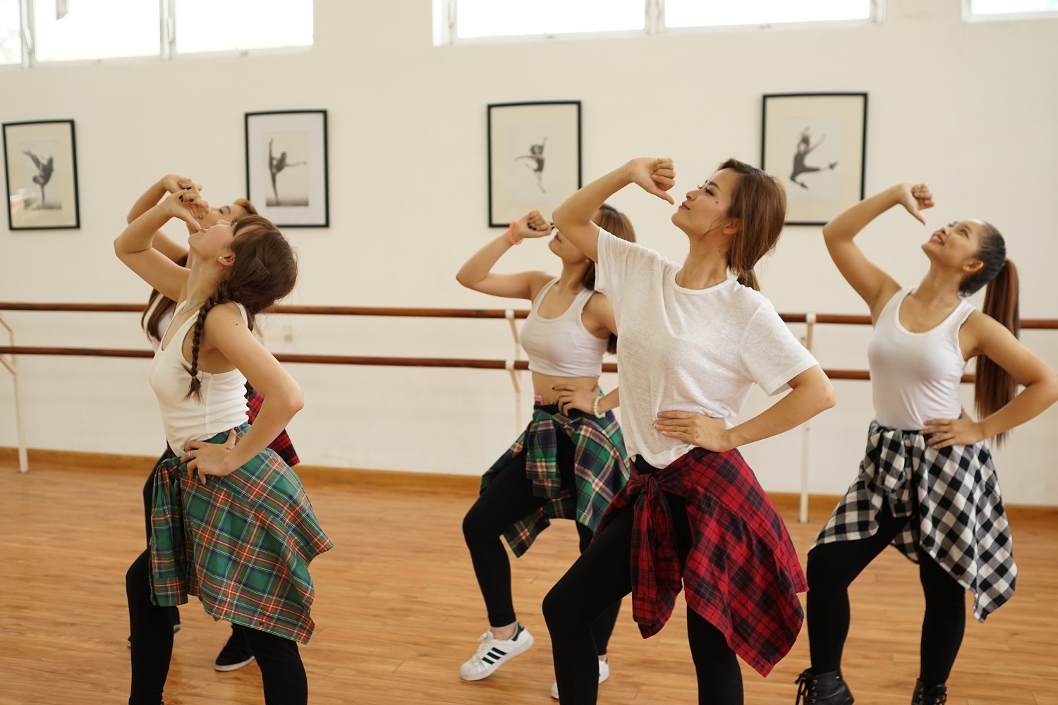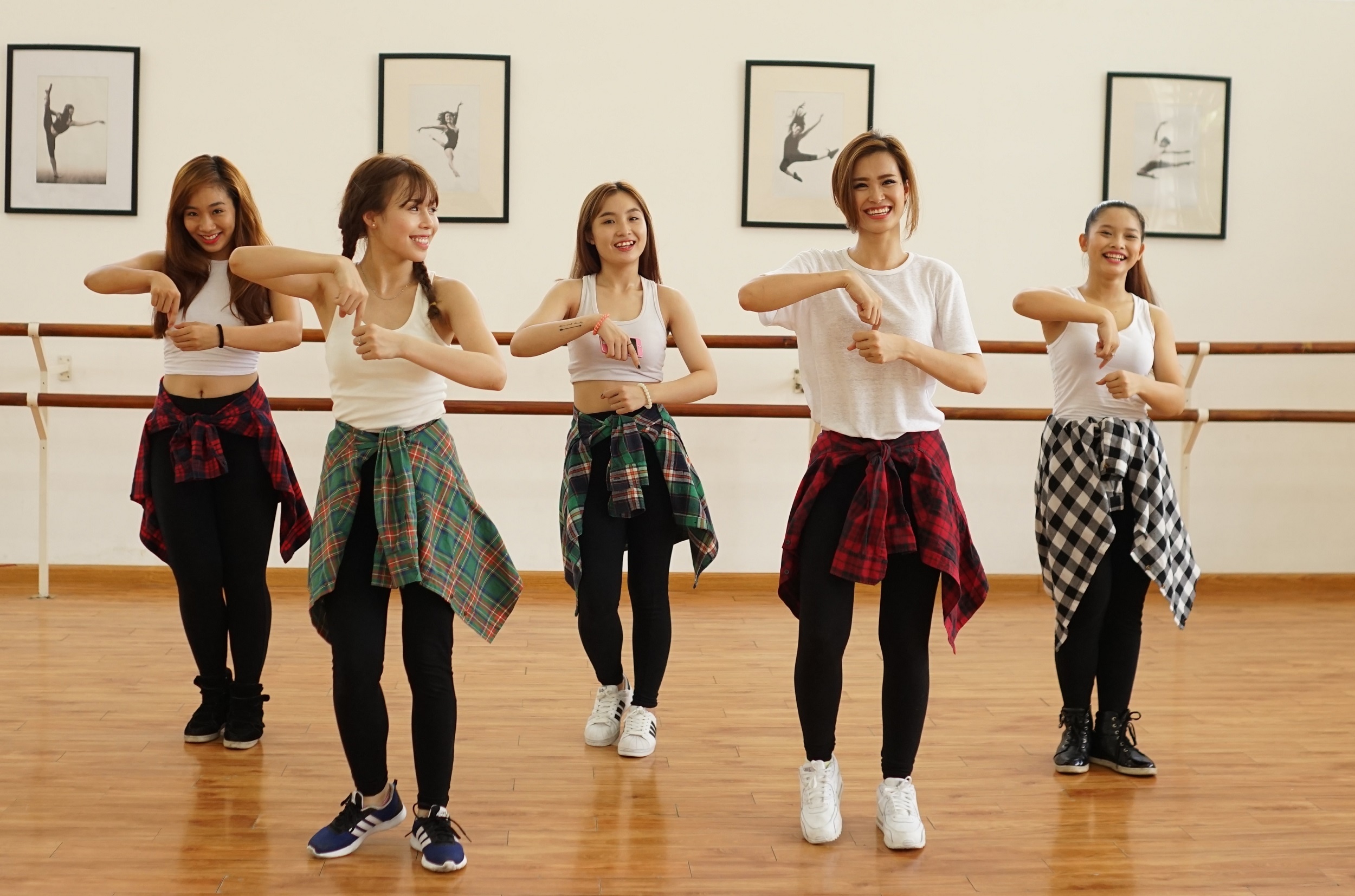 | Cô và nhóm nhảy tranh thủ nghỉ ngơi, trò chuyện trước khi trở lại với phần tập luyện vũ đạo với cường độ cao. |
