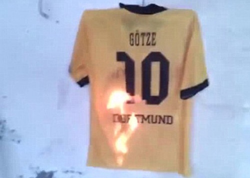 | CĐV Dortmund đốt áo Gotze khi biết anh chuyển qua đầu quân cho Bayern. |