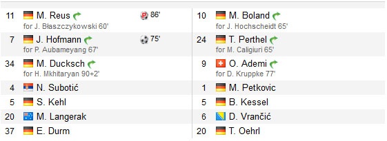 Có được bàn thắng khai thông thế bế tắc, tâm lý cầu thủ chủ nhà trở nên thoải mái hơn, và một lần nữa Hofmann trở thành người hùng khi mang về một quả 11m. Marco Reus không mắc phải một sai lầm nào để hạ gục thủ thành Davari, mang về bàn thắng gia tăng cách biệt.
