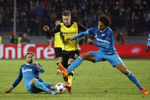 Giống như phần lớn mùa này, Dortmund vẫn phải chống chọi với vấn nạn chấn thương trong cuộc tái đấu với Zenit. Piszczek và Sarr vừa gia nhập danh sách vắng mặt cùng với Guendogan, Bender, Subotic và Blaszczykowski trước đó. Marco Reus cũng chỉ vừa trở lại tập luyện. Sẽ rất mạo hiểm nếu anh ra sân ngay trận này. Ngoài ra, HLV Klopp nhiều khả năng còn phải cất chân sút chủ lực Robert Lewandowski trên ghế dự bị, vì anh sẽ bị treo giò nếu nhận thêm 1 thẻ vàng nữa.