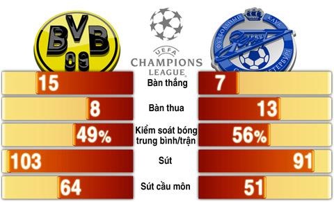 | Tương quan Dortmund - Zenit tính tại Champions League mùa này. |