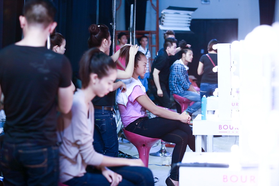 | Các thí sinh được chăm lo phần trang điểm trước khi chụp hình. |