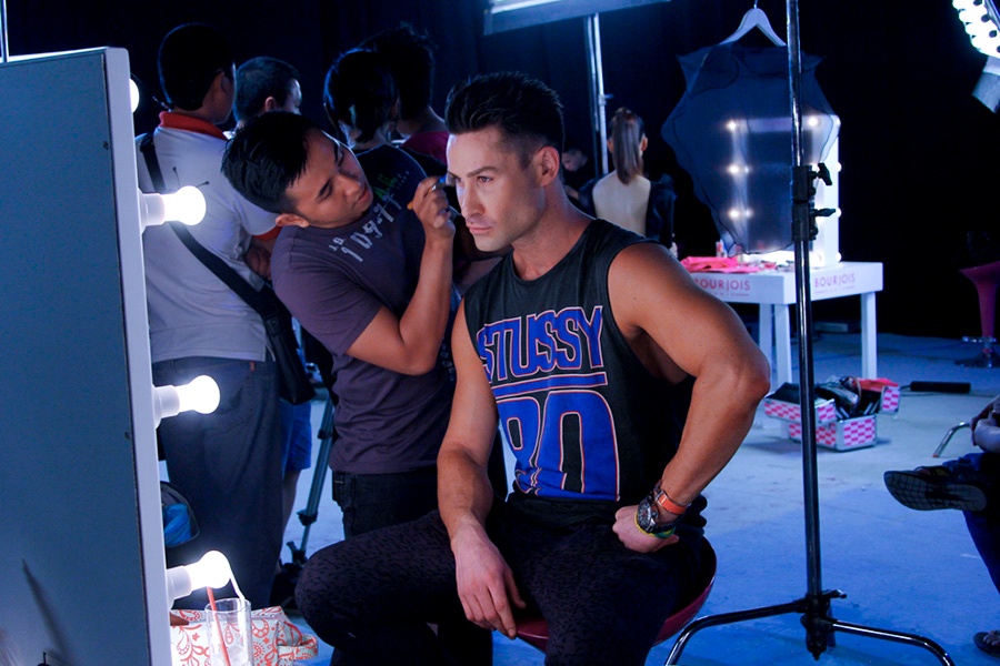 | Nam Trung hướng dẫn từng bước trang điểm cho các thí sinh. |
