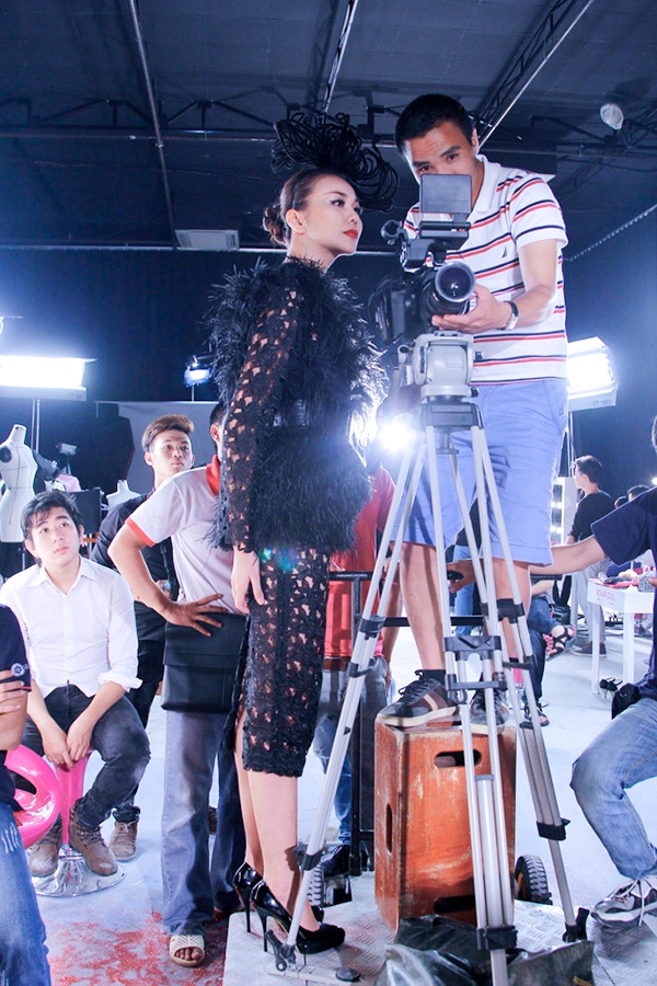| Người đẹp xứ Lạng đang tập luyện trước khi ghi hình. |