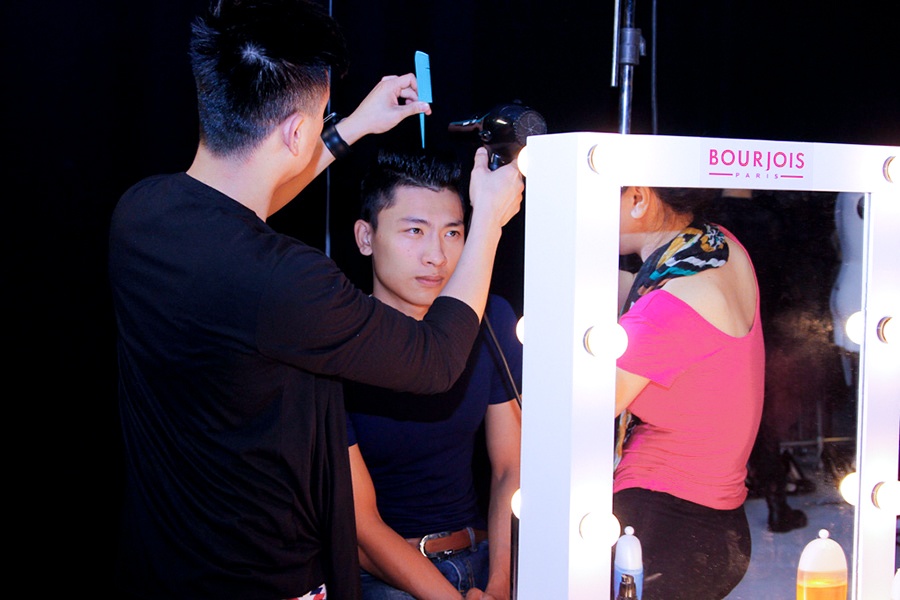 | Trần Trung được chuyên gia tạo kiểu tóc. |