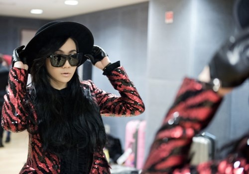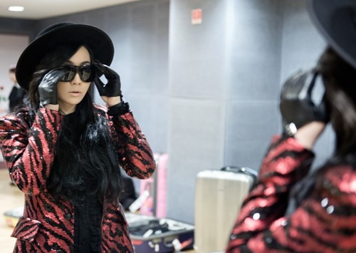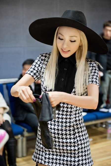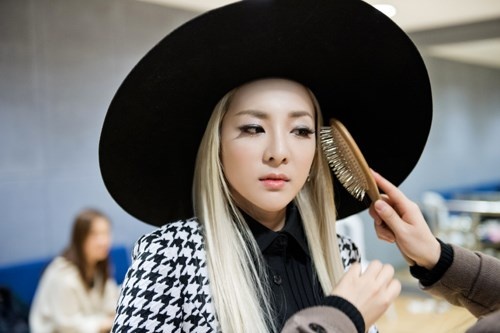 | Park Bom tranh thủ ngồi viết trong lúc chờ trang điểm. |