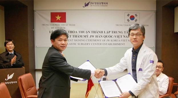 | NCS.BS. Nguyễn Phan Tú Dung và TS.BS. Man Koon Suh ký kết thành lập chi nhánh BV Thẩm mỹ Hàn Quốc JW TP.HCM. |