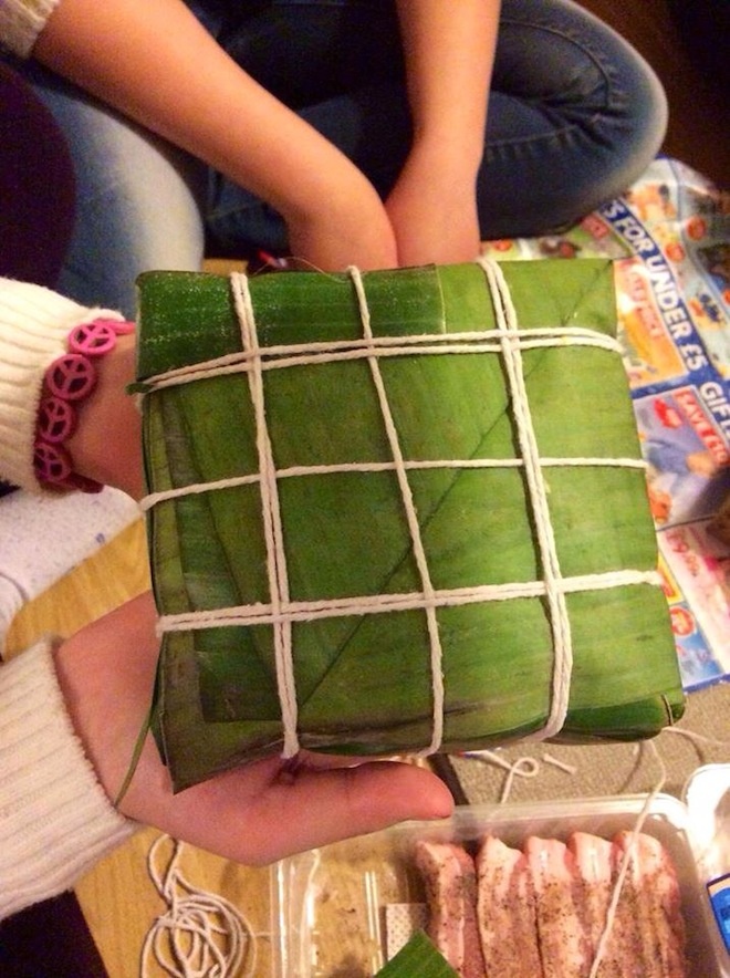 | Rủ nhau cùng gói bánh chưng - món ăn không thể thiếu vào năm mới. |
