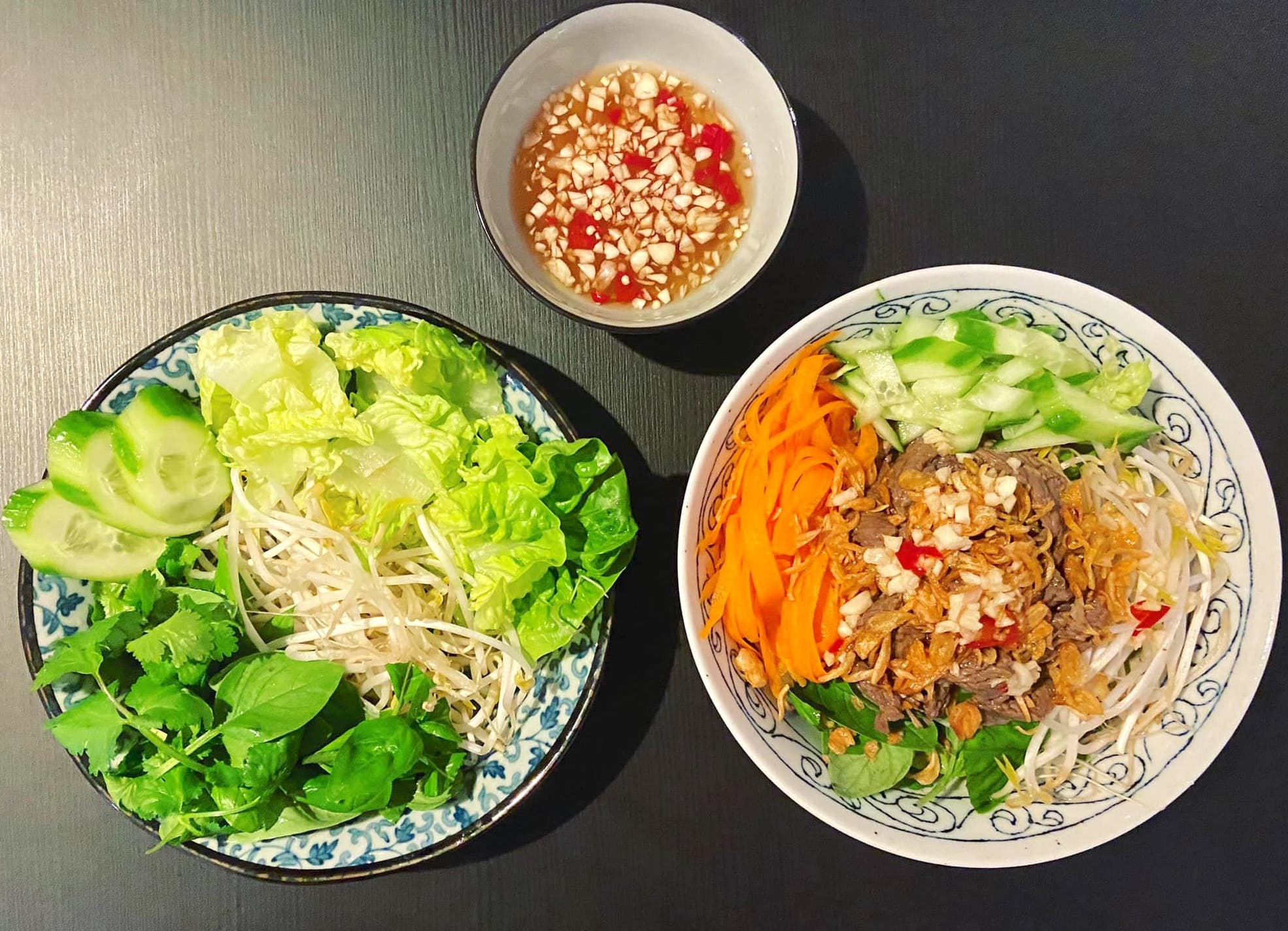- Cháo cá (không có cá lóc nên thay bằng cá chẽm Barramundi, rau đắng được thay bằng giá)