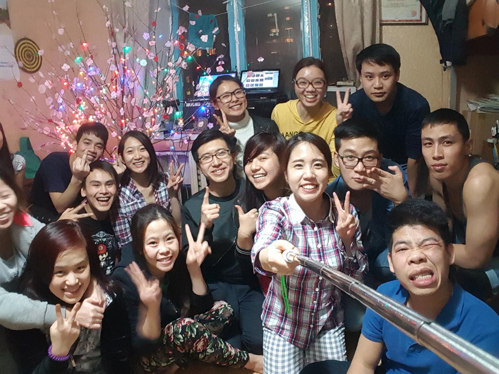 Các bạn du học sinh tại Ukraine bắt đầu gói bánh chưng vào ngày 25/12 âm lịch. Sau đó, các bạn cùng nhau trông bánh và tổ chức liên hoan. "Mặc dù không được đầy đủ như Việt Nam nhưng chúng mình vẫn cố gắng tạo không khí Tết, vẫn có cành đào bằng giấy, vẫn có bánh chưng... Không khí khá là vui vì bọn mình vẫn cảm nhận được không khí Tết đang đến gần", Quốc Lâm - DHS tại Ukraine cho biết. |