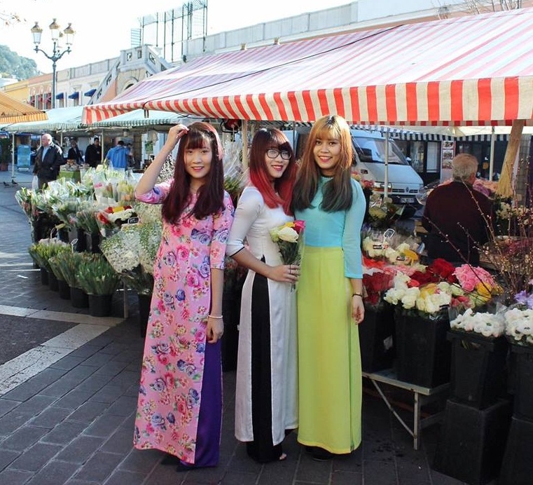 | Xuân Bính Thân 2016, Nguyễn Đào Thúy Vy - Hoa khôi cuộc thi ảnh sinh viên Việt tại Nice, Pháp cũng không về Việt Nam ăn Tết. Vì vậy, cô và các bạn đã quyết định thực hiện bộ ảnh áo dài để đón Tết. Ảnh: NVCC. |