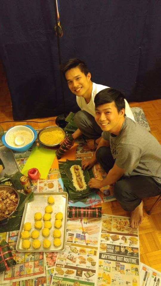 Năm nào cũng vậy, Vũ Đào Tuyết Nhung (sinh năm 1995), du học sinh tại ĐH Ottawa, Canada cùng các bạn gói bánh chưng, bánh tét chào năm mới trên nước bạn. "Mọi người đều rấy hào hứng chuẩn bị đón Tết dù xa nhà", Tuyết Nhung chia sẻ. |