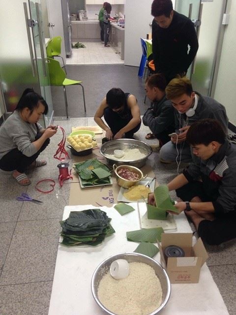 Thời điểm Tết cổ truyền Việt Nam, nhiều du học sinh tại nước ngoài vẫn phải tham dự những kỳ thi bận rộn, vì vậy không phải bạn nào cũng có dịp về ăn Tết tại quê hương. Tuy nhiên, các bạn du học sinh và cộng đồng người Việt tại khắp nơi trên thế giới đều tổ chức các hoạt động đón Tết xa quê hương cùng nhau. Trên đây là ảnh hội du học sinh tại Hàn Quốc cũng tổ chức gói bánh chưng đón Tết. |