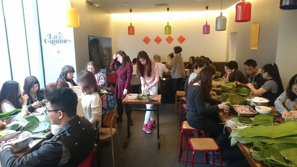 Pierre Nguyễn (sinh viên Đại học Paris 1) cho biết: “Mình đang học làm món nộm ngó sen. Nhìn qua thì dễ nhưng khi bắt tay làm mới thấy khó. Còn gói bánh chưng, các bạn nữ nhận hết rồi”.