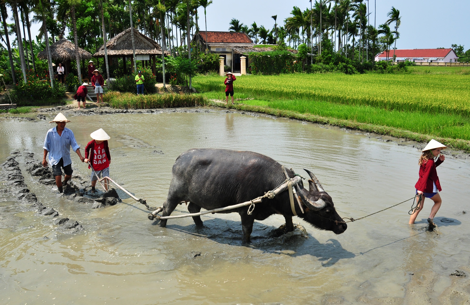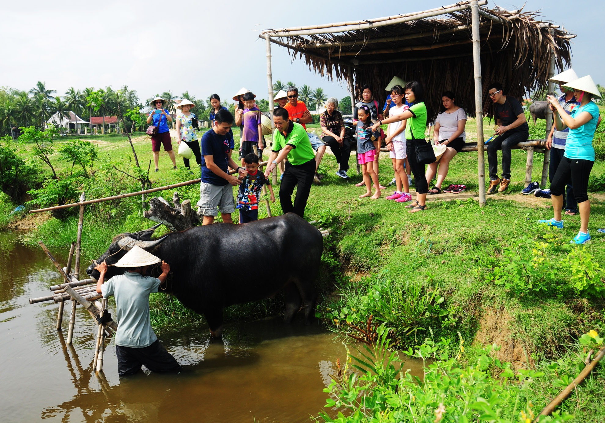 Trước nhu cầu trải nghiệm khám phá đồng quê ven phố cổ Hội An của nhiều du khách, năm 2010, anh Trần Văn Khoa, giám đốc một công ty lữ hành đã đầu tư hàng trăm triệu đồng đầu tư xe trâu bằng tre, trạm dừng chân bằng tranh tre nứa lá, khuyến khích người dân ở xã Cẩm Thanh nuôi trâu làm du lịch.
