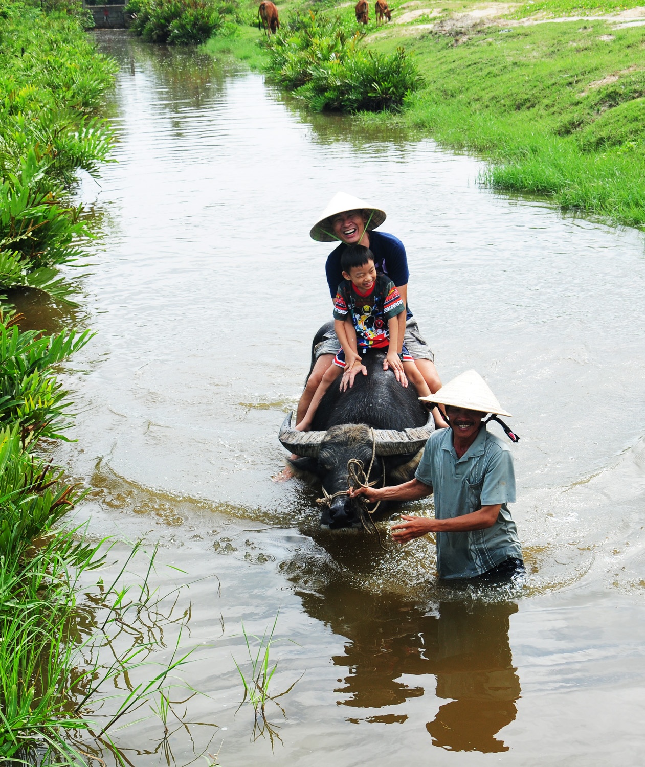 Trạm dừng chân trước khi khám phá đồng quê trên lưng trâu.
