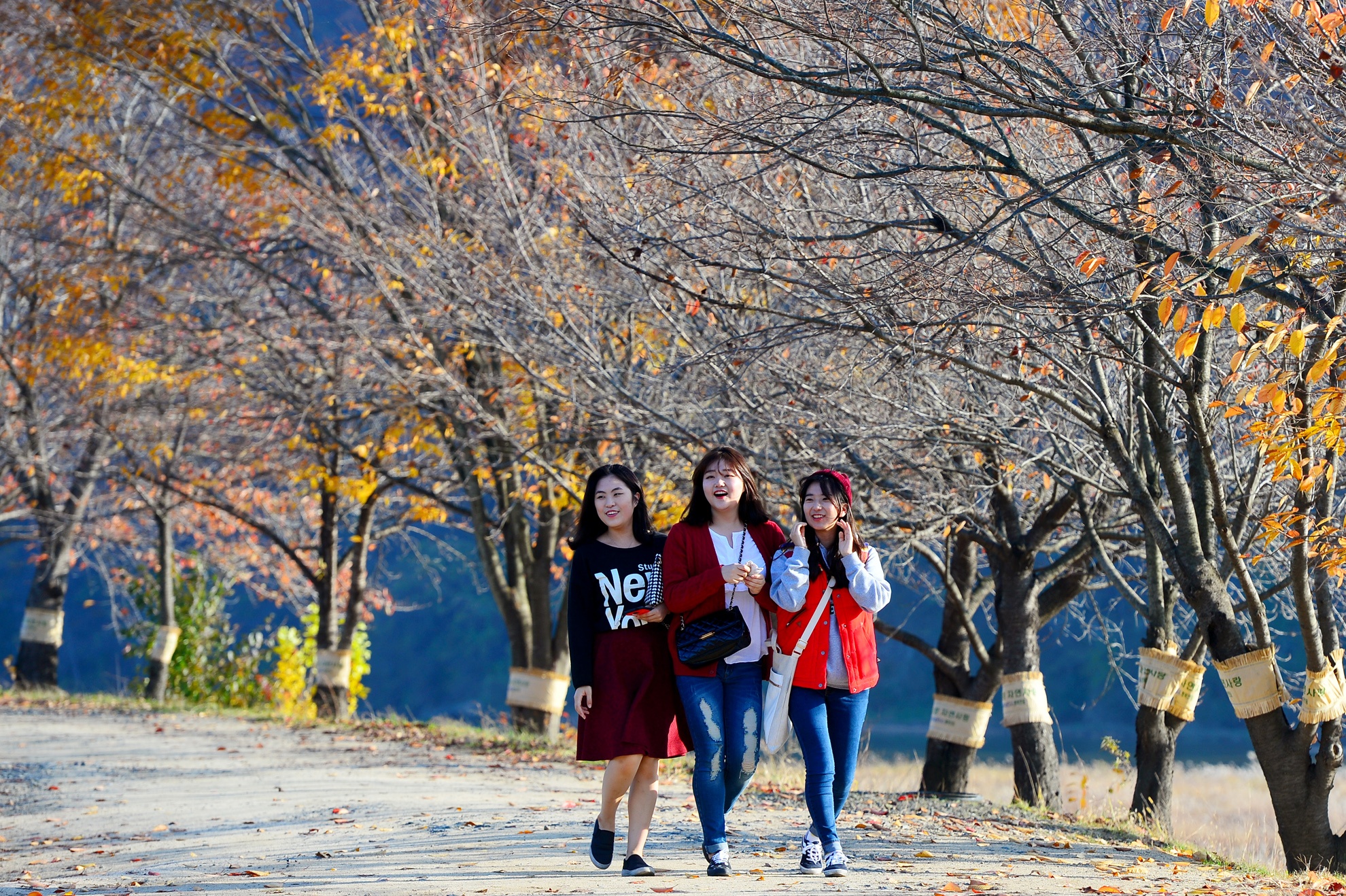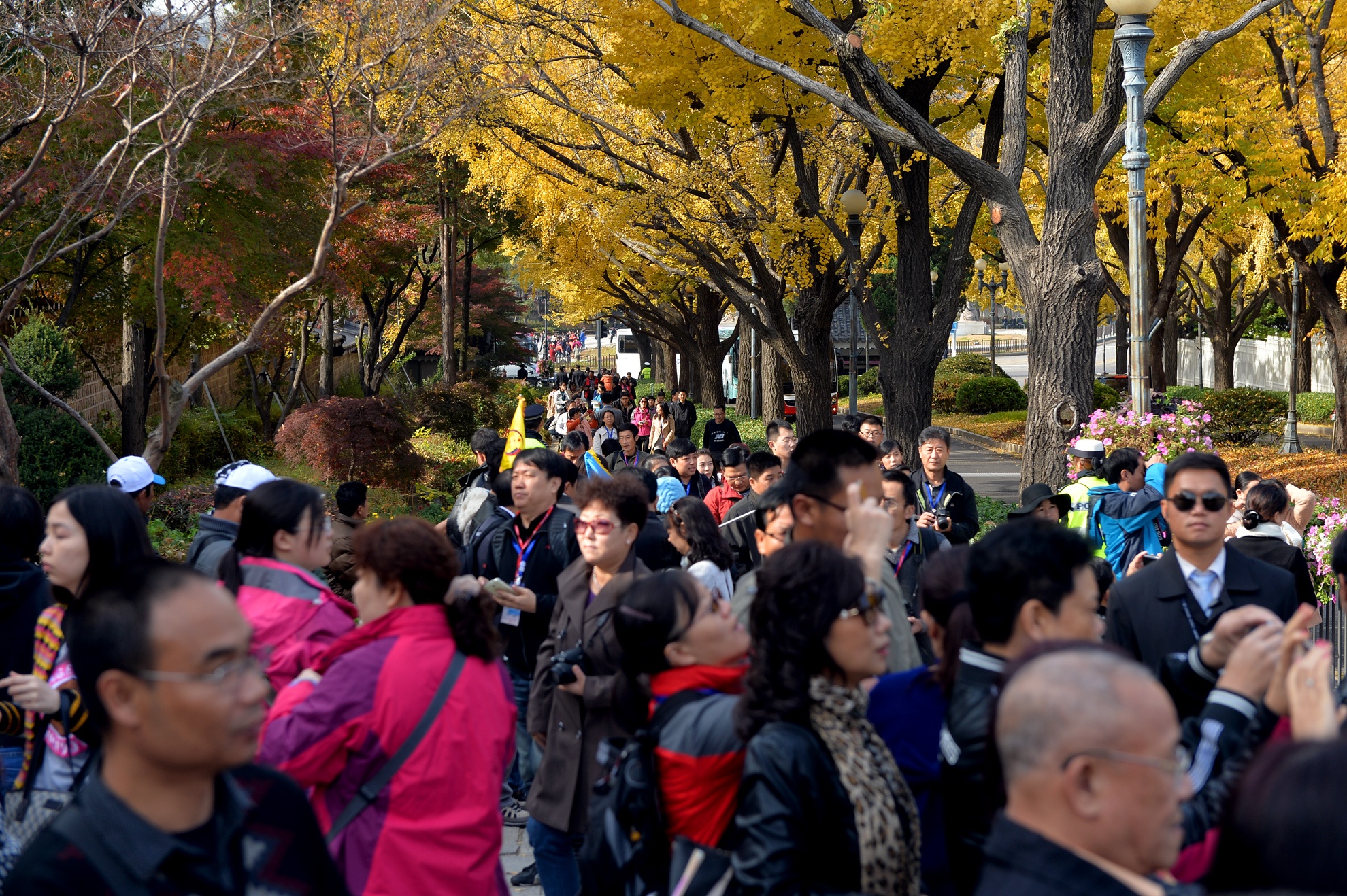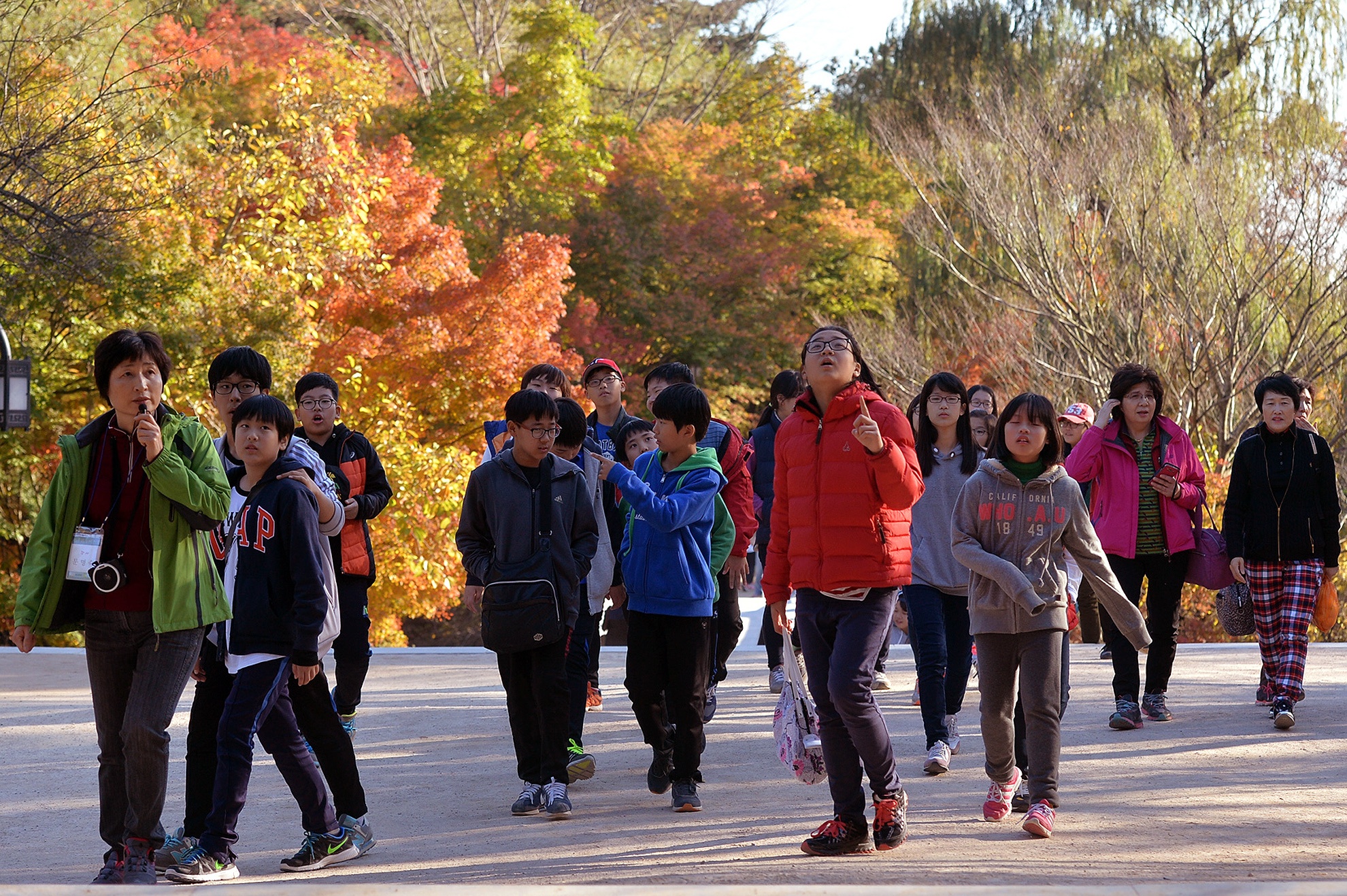 | Không chỉ có khách đến từ các nước lân cận, chính người Hàn Quốc cũng tranh thủ đi từ địa phương này sang địa phương khác để ngắm khung cảnh mùa thu. |