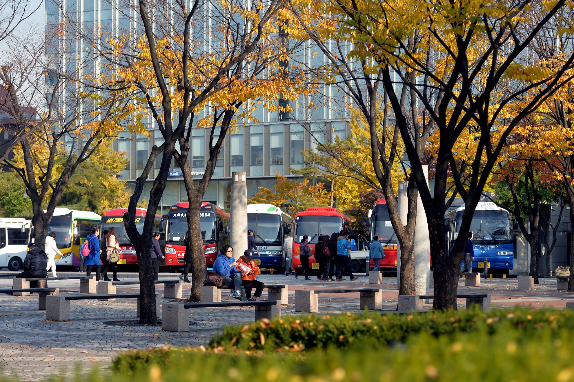 | Tại thủ đô Seoul, khách du lịch nối dài đi dọc trên một trong những con đường lãng mạn nhất, nơi đi qua Phủ Tổng Thống. Trong số này có rất nhiều đoàn đến từ Việt Nam. |