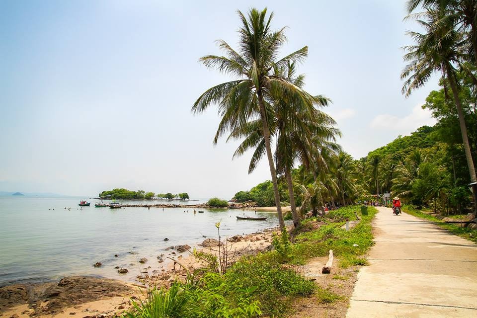 | 5. Tham quan: Bên cạnh tắm biển, thưởng thức hải sản, chụp hình khung cảnh, đi xe máy trên con đường duy nhất của đảo (dài khoảng 5 km). Bạn có thể thuê kính để lặn biển ngắm san hô gần bờ, lặn bắt hải sản, tới bia chủ quyền quốc gia khắc đủ tên 16 đảo thuộc quần đảo |