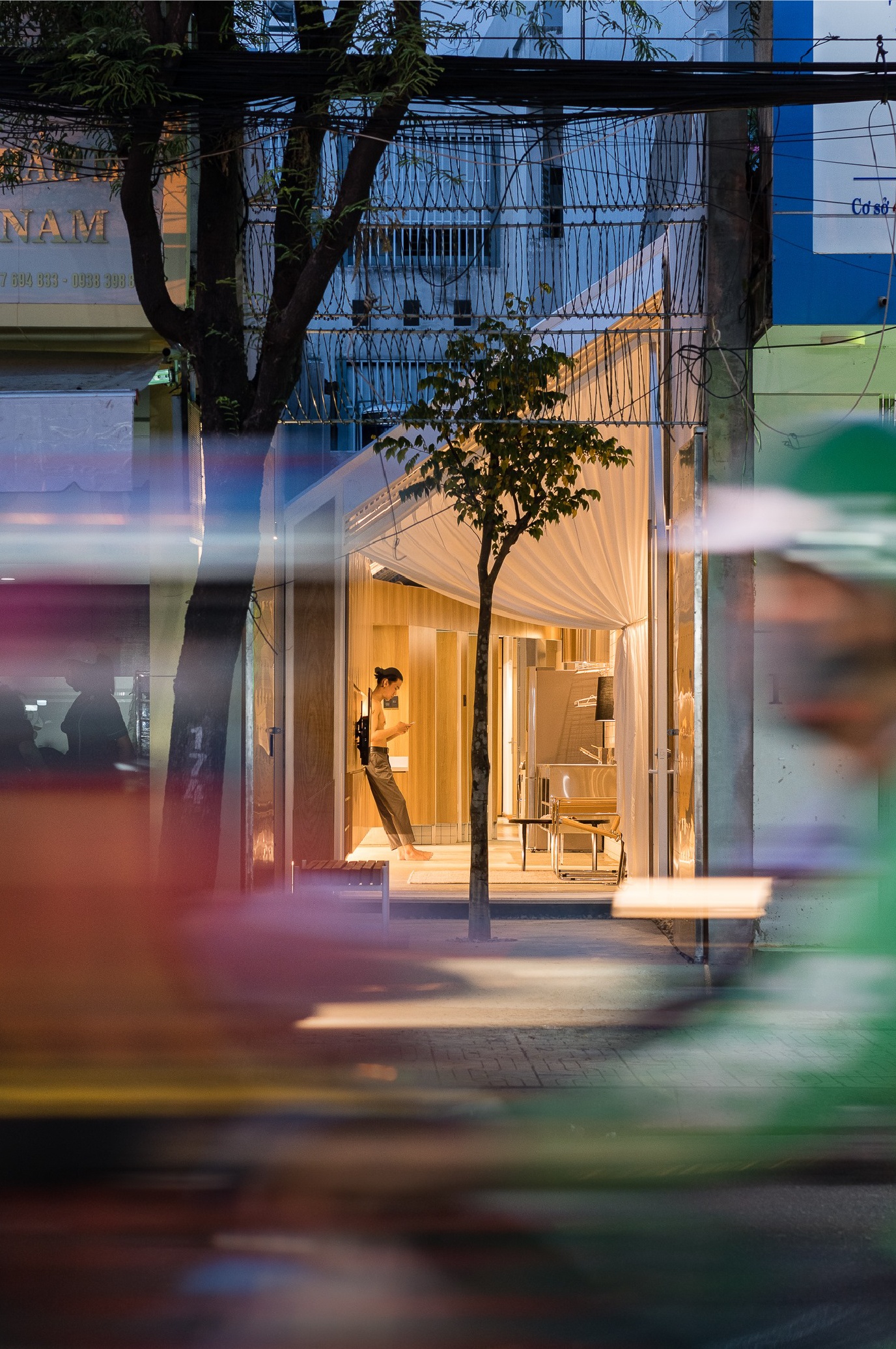 Tận dụng chiều dài đặc biệt, kiến trúc sư đã chọn cách phương pháp layering trong bố cục công năng, nhằm phân lớp không gian và giảm thiểu tiếng ồn triệt để từ bên ngoài.