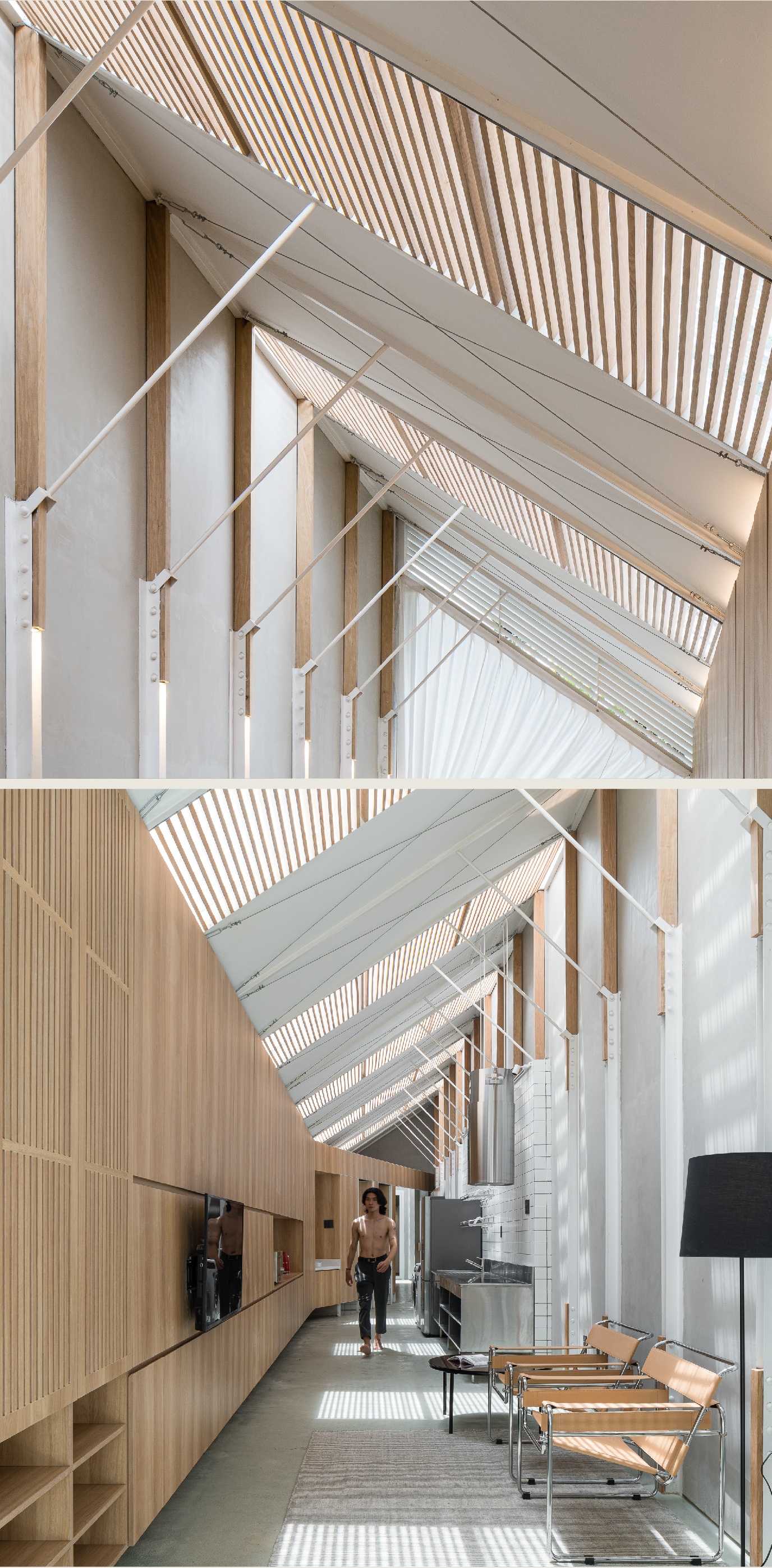 Về mặt kết cấu, nhóm kiến trúc sư đã ứng dụng dạng nhà khung thép và hạn chế việc sử dụng bê tông cho công trình.