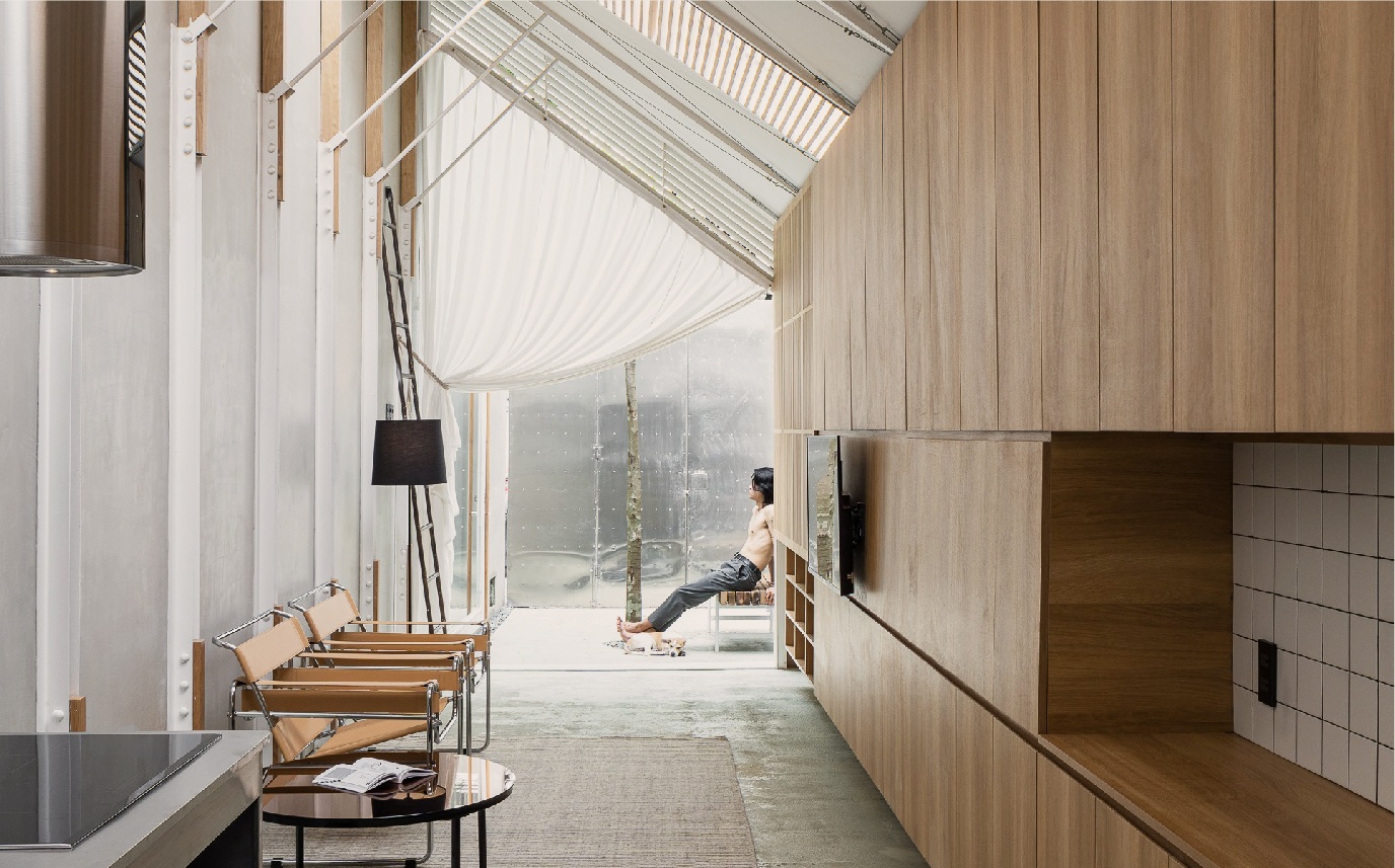 Chính vì vậy, Sawadeesign muốn mang đến không khí của "một khoang hành khách máy bay, được đặt để nhẹ nhàng trong lòng đô thị" cho công trình lần này.