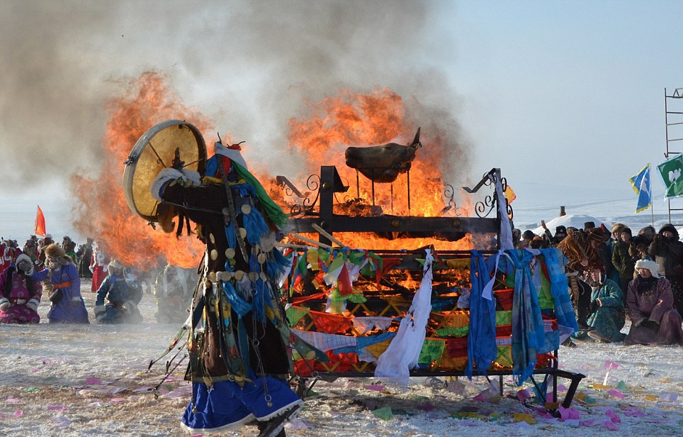 | Pháp sư đang nhảy múa trong lễ hội. Ảnh: Feature China. |