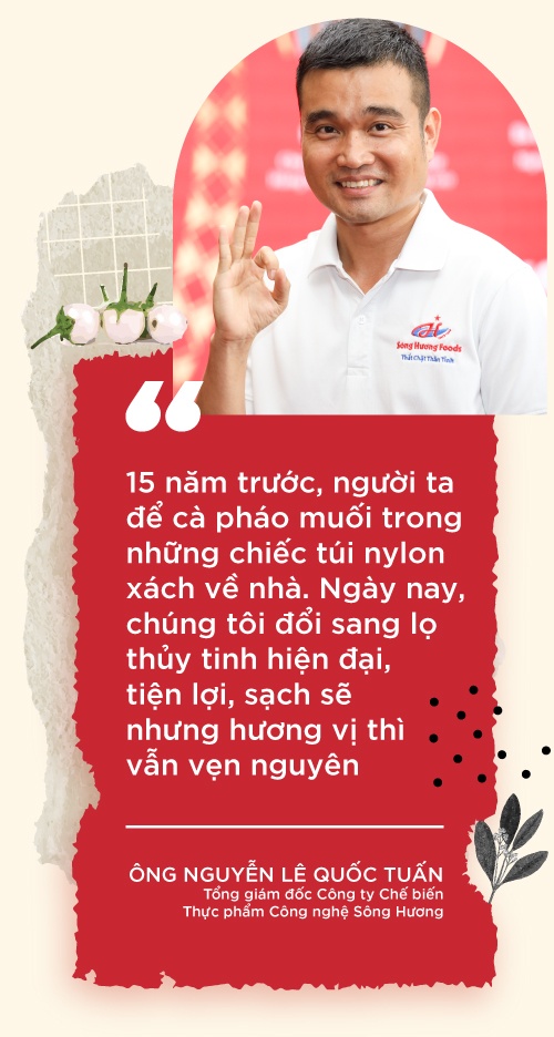 Ông Tuấn vốn là người ăn chay trường. Trong khi đó, Sông Hương Foods không đơn thuần chỉ bán mỗi cà pháo. Suốt 25 năm, công ty đã nổi tiếng trên thị trường với những loại mắm tôm, mắm cá…
