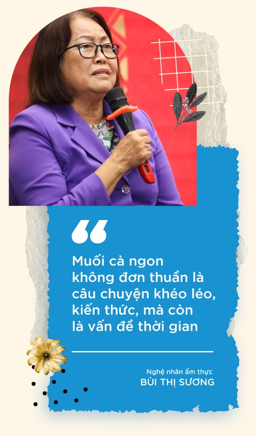 Dù không quá phức tạp, để muối được một vại cà ngon như nghệ nhân ẩm thực Bùi Thị Sương làm vẫn không hề đơn giản. Đó không đơn thuần là câu chuyện khéo léo, kiến thức mà còn là vấn đề thời gian. Đặc biệt với nhịp sống tấp nập của xã hội hiện đại, bỏ thời gian để muối từng vại cà không phải chuyện dễ.