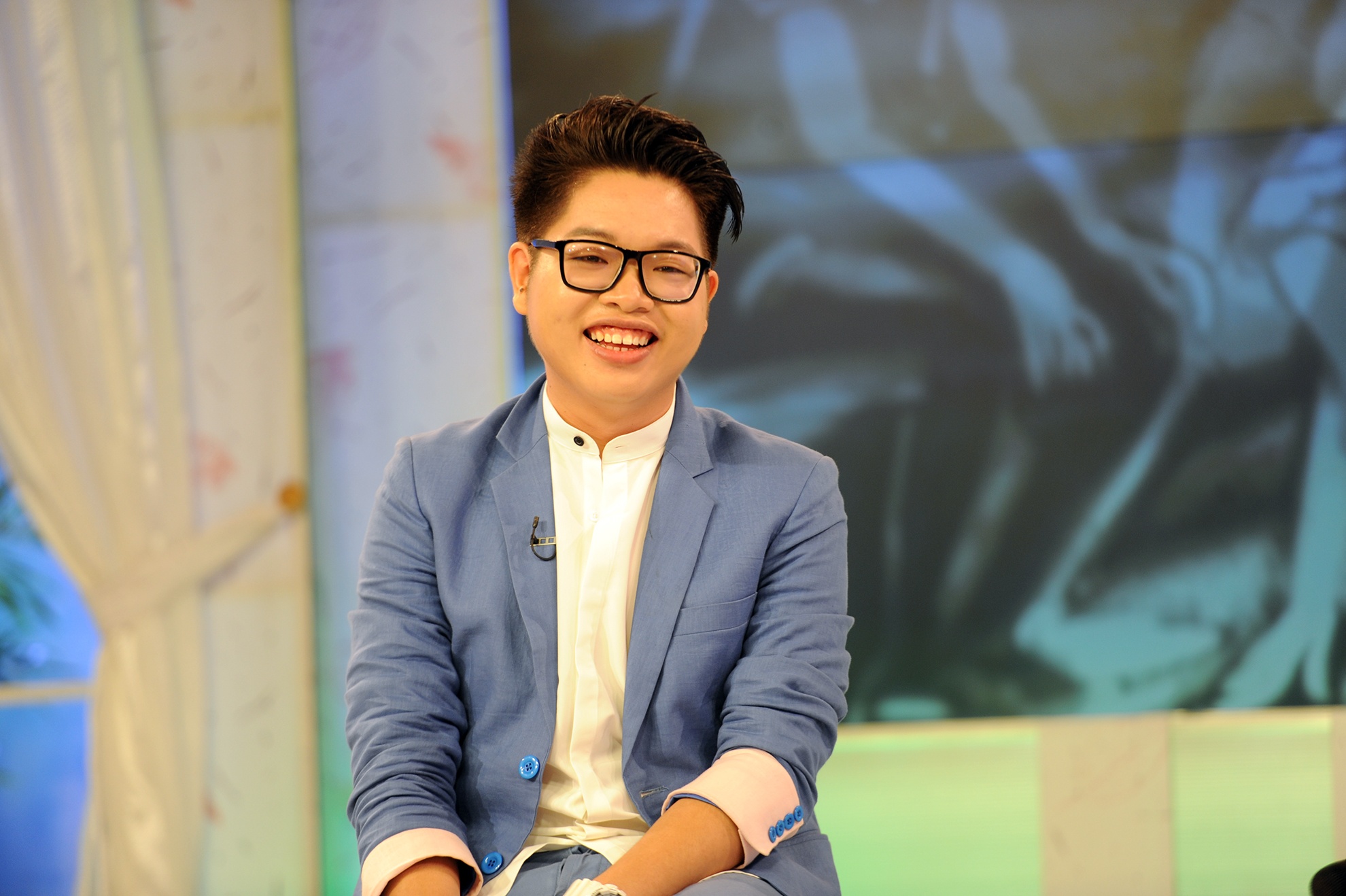 Nụ cười hạnh phúc của quán quân The Voice khi tham gia chương trình Bữa trưa vui vẻ.