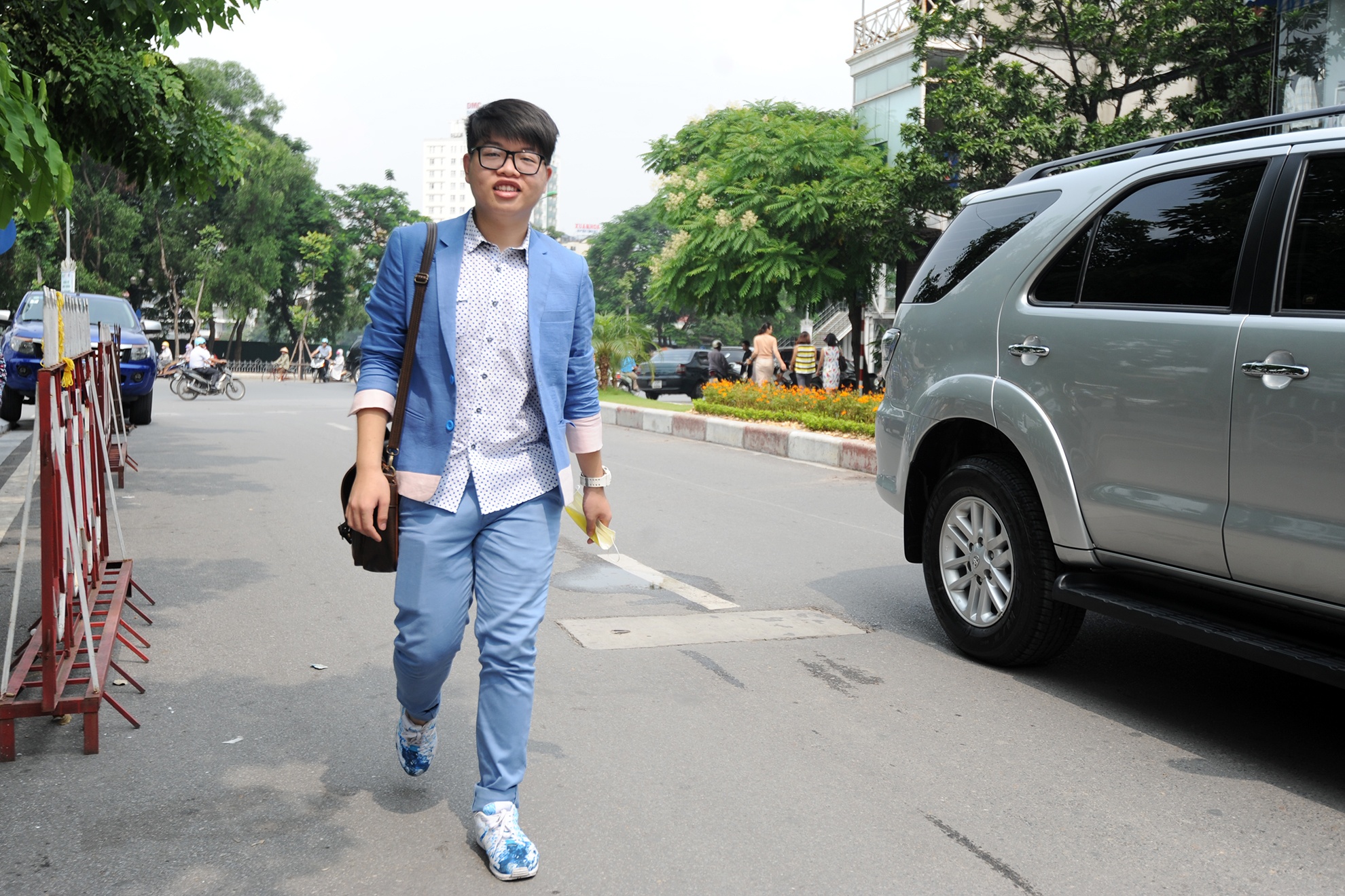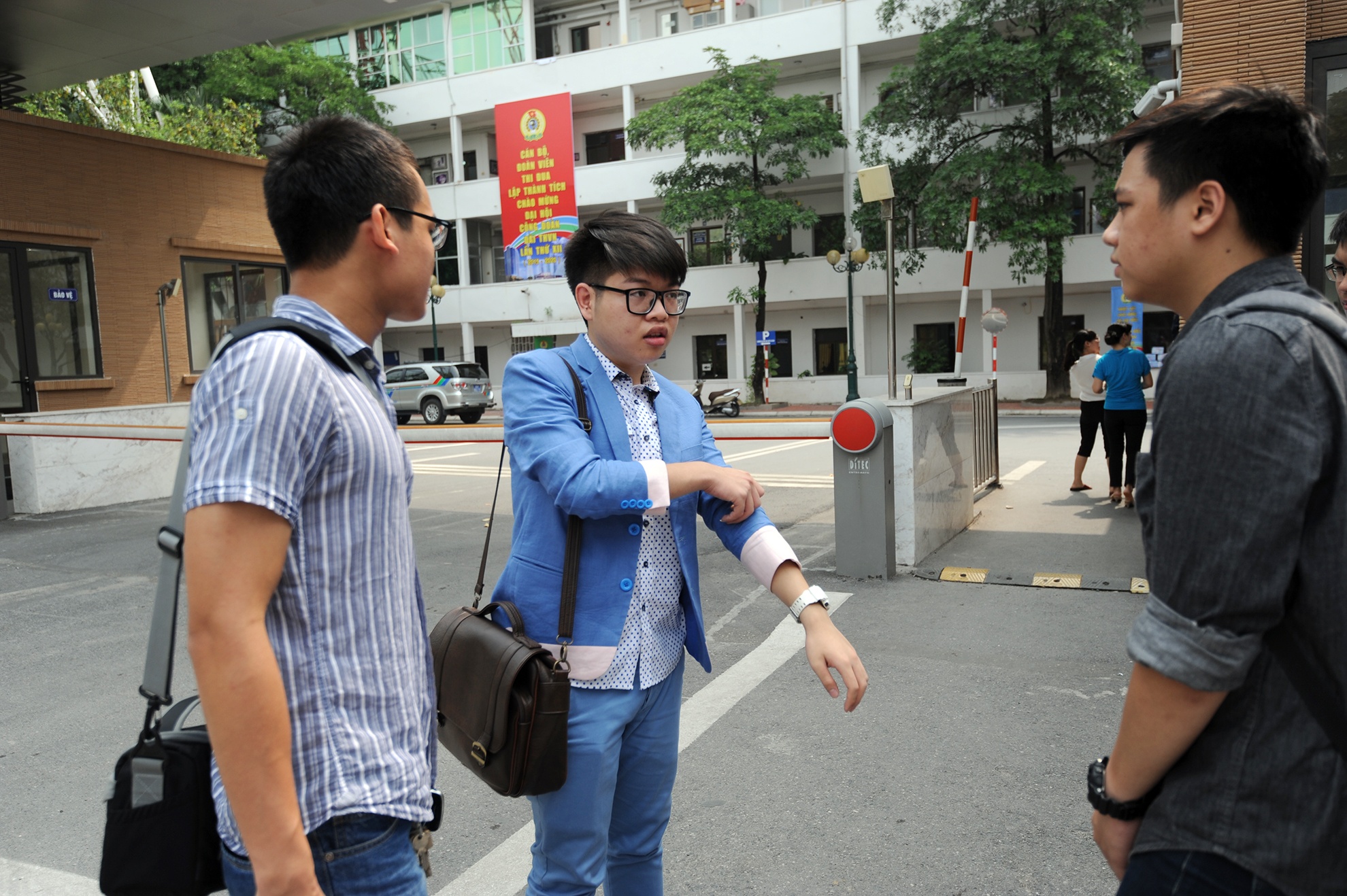 Đúng 9h sáng 1/10 , anh có mặt tại Đài truyền hình Việt Nam để làm khách mời của chương trình Bữa trưa vui vẻ. Dù chương trình lên sóng trực tiếp lúc 12h nhưng quán quân The Voice đến sớm để gặp gỡ người hâm mộ và trao đổi kịch bản với những người trong ê-kíp thực hiện.