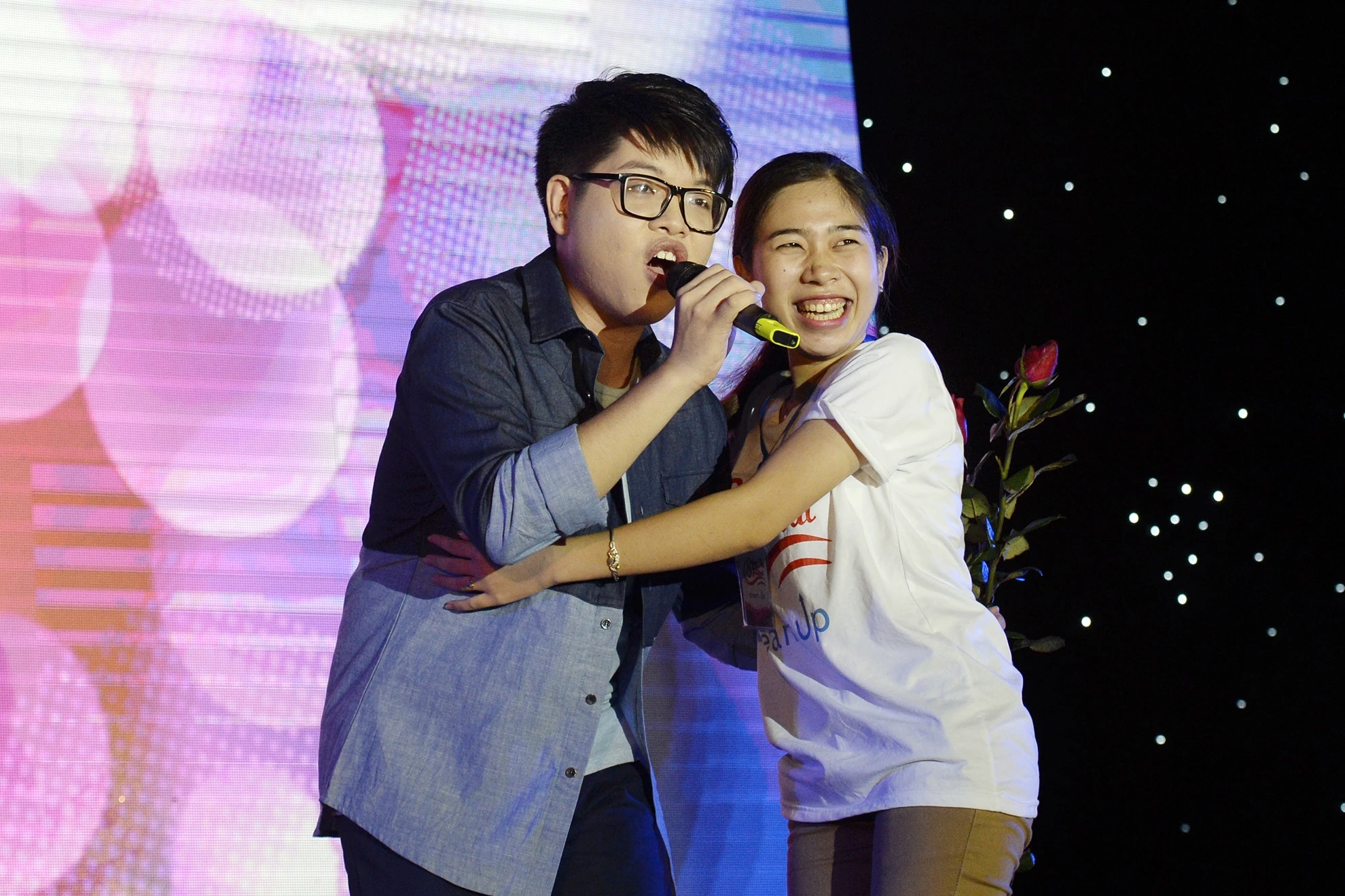 Một số khán giả không ngại ngần chạy lên sân khấu để tặng hoa và chụp ảnh chung với thần tượng. "Tôi rất run và bất ngờ khi...tự nhiên được rất nhiều người ôm và xin chụp ảnh cùng" - Đức Phúc thật thà chia sẻ.
